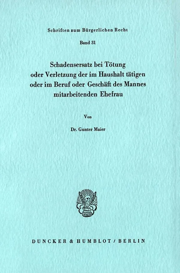 Schadensersatz bei Tötung oder Verletzung der im Haushalt tätigen oder im Beruf oder Geschäft des Ehemannes mitarbeitenden Ehefrau.