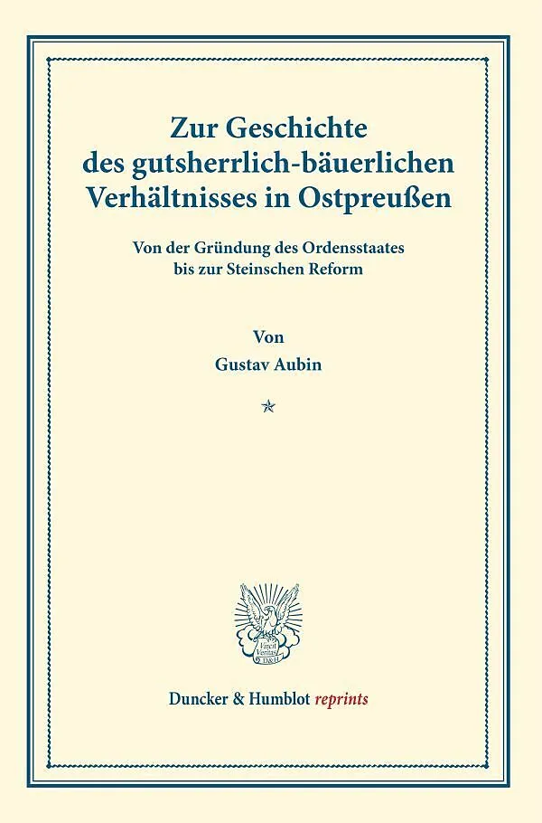 Gegenstand des Buches ist die lokalgeschichtliche Entwicklung Ostpreußens von seiner Gründung als Ordensstaat bis hinein ins 18. Jahrhundert. Aubin behandelt zunächst die ersten Anfänge des Ordensstaates und leitet dann über in die Kolonisationspolitik des Ord...