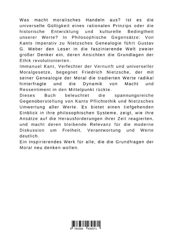 Was macht moralisches Handeln aus? Ist es die universelle Gültigkeit eines rationalen Prinzips oder die historische Entwicklung und kulturelle Bedingtheit unserer Werte? In Philosophische Gegensätze: Von Kants Imperativ zu Nietzsches Genealogie führt Gustav G....
