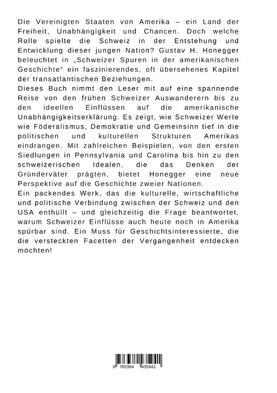 Die Vereinigten Staaten von Amerika ein Land der Freiheit, Unabhängigkeit und Chancen. Doch welche Rolle spielte die Schweiz in der Entstehung und Entwicklung dieser jungen Nation? Gustav H. Honegger beleuchtet in Schweizer Spuren in der amerikanischen Geschic...