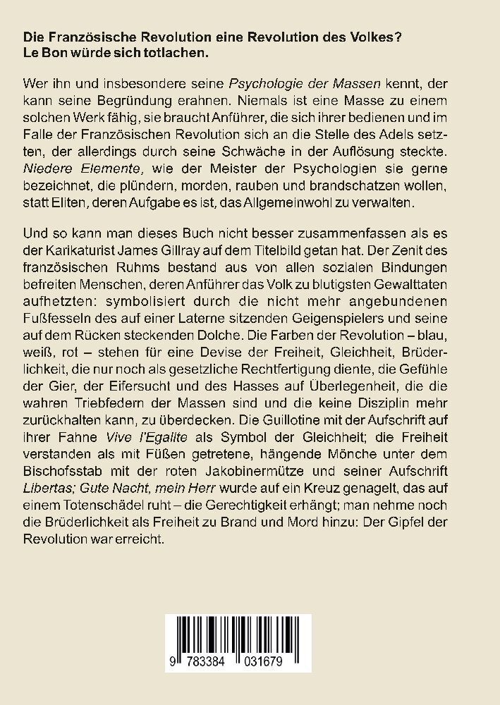 Die Französische Revolution eine Revolution des Volkes? Le Bon würde sich totlachen. Wer ihn und insbesondere seine Psychologie der Massen kennt, der kann seine Begründung erahnen. Niemals ist eine Masse zu einem solchen Werk fähig, sie braucht Anführer, die s...