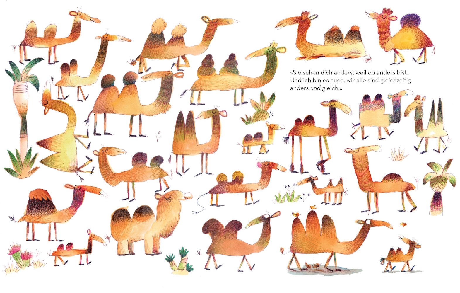Es gibt viele Kamele in der Wüste, aber nur einen Alberto! Ein Höcker, zwei Höcker. Ups! Drei Höcker? Na und? Alberto ist trotzdem ein Kamel. Doch die anderen Kamele sehen das anders. Sie finden, dass Alberto anders ist. Aber das sieht Alberto anders. Genau w...