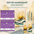Erleben Sie die Faszination von Sprachen - mit dem Guy de Maupassant Geschenkset und der revolutionären Ilya Frank Lesemethode. Diese Methode macht die feinsinnigen Erzählungen von Maupassant im Original zugänglich. Auch mit geringen Vorkenntnissen tauchen Sie...Erleben Sie die Faszination von Sprachen - mit dem Guy de Maupassant Geschenkset und der revolutionären Ilya Frank Lesemethode. Diese Methode macht die feinsinnigen Erzählungen von Maupassant im Original zugänglich. Auch mit geringen Vorkenntnissen tauchen Sie mühelos in die nuancierten Geschichten und die französische Gesellschaft des 19. Jahrhunderts ein. Das Geheimnis ist die geschickte Kombination aus Originaltext und erklärenden Übersetzungen. Der Text ist in handliche Abschnitte unterteilt und abwechselnd mit und ohne Kommentare aufbereitet. Zunächst lesen Sie einen Absatz mit präzisen Übersetzungen und Verständnishilfen. So bleiben keine Fragen offen und Sie erschließen sich die Bedeutung jeden Wortes. Direkt danach folgt der Originaltext, sodass Sie in den natürlichen Lesefluss eintauchen. Die Kommentare liefern nicht nur Übersetzungen, sondern erklären auch grammatikalische Strukturen sowie idiomatische Wendungen. Sie erhalten Einblicke in die vielschichtigen Bedeutungen von Vokabeln und die Besonderheiten der Literatursprache. Durch dieses Wechselspiel zwischen unterstütztem und originalgetreuem Lesen lernt Ihr Gehirn, die Sprache intuitiv zu erfassen. Ihr Wortschatz und Sprachgefühl entwickeln sich fast wie von selbst. Bereits nach wenigen Wochen werden Sie einen deutlichen Fortschritt bemerken. Die Ilya Frank Methode eignet sich ideal für Wiedereinsteiger, die ihr Wissen auffrischen wollen. Durch regelmäßiges Lesen aktivieren Sie spielend Ihren Wortschatz wieder und festigen langfristig das grammatikalische Grundwissen. Aber auch für Anfänger ist dies eine spannende Art, sich Schritt für Schritt in eine neue Sprache einzulesen und auf unterhaltsame Weise Fortschritte zu erzielen. Lesen nach der Ilya Frank Methode öffnet Ihnen die Tür zur faszinierenden Welt der Literatur im Original. Erleben Sie mit dem Guy de Maupassant Geschenkset von EasyOriginal die Tiefen der menschlichen Natur und die Gesellschaft des 19. Jahrhunderts. Dieses Set enthält nicht nur eine Sammlung von Maupassants Geschichten als zweisprachige Bücher mit integrierten Hörbüchern, sondern auch ein exklusives Schreibset, das Ihnen stylisches Schreibvergnügen bietet. Guy de Maupassant Kollektion: Boule de suif / Fettklößchen La Parure / Der Schmuck Le Port / Der Hafen Le crime au père Boniface / Das Verbrechen des alten Bonifatius Leseproben: https://easyoriginal.com/leseproben/DF15.pdf https://easyoriginal.com/leseproben/DF3.pdf https://easyoriginal.com/leseproben/DF6.pdf https://easyoriginal.com/leseproben/DF2.pdf Innovative Lesemethode: https://easyoriginal.com/lesemethode/ Die sorgfältig ausgewählten Geschichten von Guy de Maupassant bieten einen tiefen Einblick in die menschliche Natur und die Gesellschaft seiner Zeit. Mit seiner präzisen und klaren Erzählweise entführt Maupassant Sie in eine Welt voller Überraschungen und Entdeckungen. Dieses Geschenkset ist das perfekte Geschenk für alle, die ihre Sprachkenntnisse verbessern, einen Einblick in die klassische französische Literatur erhalten oder einfach eine gute Erzählung genießen wollen. Die zweisprachigen Bücher mit Hörbüchern kombinieren tiefsinnige Geschichten mit innovativer Didaktik und unterhaltsamem Lesespaß. Das Geschenkset beinhaltet: + Boule de suif / Fettklößchen von Guy de Maupassant (zweisprachig Französisch-Deutsch) + La Parure / Der Schmuck von Guy de Maupassant (zweisprachig Französisch-Deutsch) + Le Port / Der Hafen von Guy de Maupassant (zweisprachig Französisch-Deutsch) + Le crime au père Boniface / Das Verbrechen des alten Bonifatius von Guy de Maupassant (zweisprachig Französisch-Deutsch) + Integrierter Online-Zugang zu Hörbüchern (Französisch) + Eleganz der Natur Schreibset Premium - Exklusiv designt Eleganz der Natur Schreibset Premium im majestätischen Blütentraum-Design Wo Eleganz auf Funktion trifft für alle, die das Besondere suchen Tauchen Sie ein in die ästhetische Schönheit der Natur mit dem "Eleganz der Natur Schreibset Premium". Jedes Detail dieses Sets spiegelt die Eleganz und den Reichtum der natürlichen Welt wider. Hardcover Notizbuch A5: Das Herzstück dieses Sets ist ein wunderschön gestaltetes Hardcover-Notizbuch im A5-Format mit 64 linierten Seiten. Das Cover ziert eine majestätische Blüte in zarten Gold- und Bernsteintönen, die sich vor einem harmonischen Hintergrund von sanft geschwungenen Blättern in tiefen Grüntönen entfaltet. Der Hintergrund mit seiner Mischung aus erdigen und aquatischen Farben setzt die goldene Blüte perfekt in Szene. Der feste Hardcover-Einband schützt Ihre Notizen, Gedanken und Zeichnungen zuverlässig. Elegante Lesezeichen (2 Stück): Ein gutes Buch oder Notizbuch verdient es, mit Eleganz markiert zu werden. Diese beiden Lesezeichen, die fein verarbeitet sind und im Design des Notizbuchs harmonieren, sind nicht nur nützlich, sondern auch ein Ausdruck von Stil. Hochwertiger Metallkugelschreiber: Dieser edle Kugelschreiber repräsentiert die Präzision und Qualität der besten Schreibgeräte. Mit einem Gehäuse aus Metall wird jedes Wort zum Vergnügen. Sein Gewicht und Design sorgen für ein ausgewogenes und komfortables Schreibgefühl. Stilvoller Gel Kugelschreiber: Funktionalität trifft auf Ästhetik mit diesem Kugelschreiber. Die sorgfältige Verarbeitung zeigt sich sowohl in seinem schimmernden Erscheinungsbild als auch in der Qualität seiner Schreibfähigkeit. Erstklassiger Metallminendruckstift: Dieser Druckbleistift mit seinem auffälligen Gehäuse ist das perfekte Werkzeug für Präzisionsarbeiten. Die Mine gleitet mühelos über das Papier, was ihn ideal für Zeichnungen oder technisches Schreiben macht. Qualität, die man fühlt: Jedes Element d