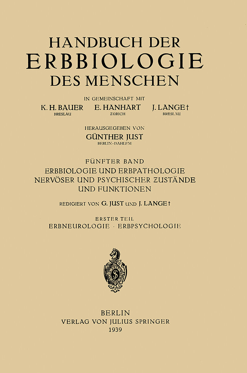 Erbbiologie und Erbpathologie Nervöser und Psychischer Zustände und Funktionen