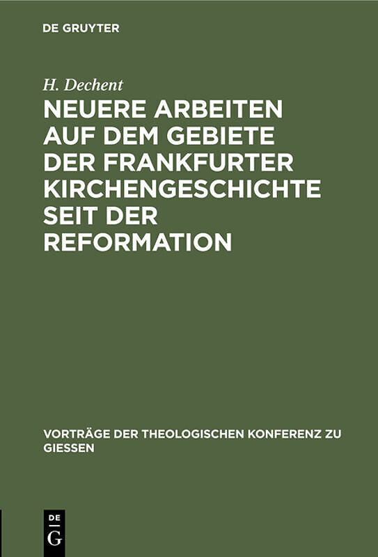 Keine ausführliche Beschreibung für "Neuere Arbeiten auf dem Gebiete der Frankfurter Kirchengeschichte seit der Reformation" verfügbar. Inhalt Frontmatter -- Neuere Arbeiten auf dem Gebiete der Frankfurter Kirchengeschichte seit der Reformation -- Ba...