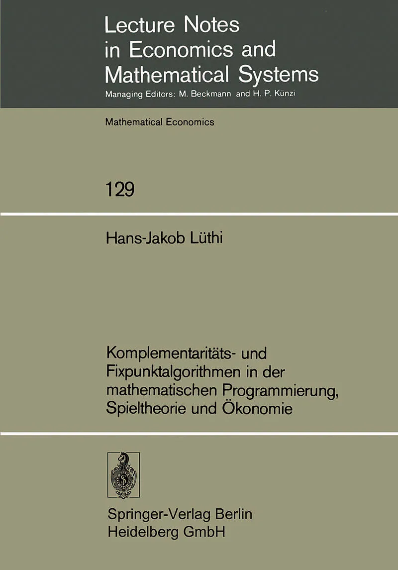 In den letzten Jahren ist mit der Schaffung von Komplementaritats- und Fixpunkt algorithm en ein recht eigentlicher Durchbruch gegHickt, der sowohl in theoretischer Hinsicht uberzeugt als auch yom praktischen Standpunkt aus zu grossen Hoffnungen berechtigt. Th...