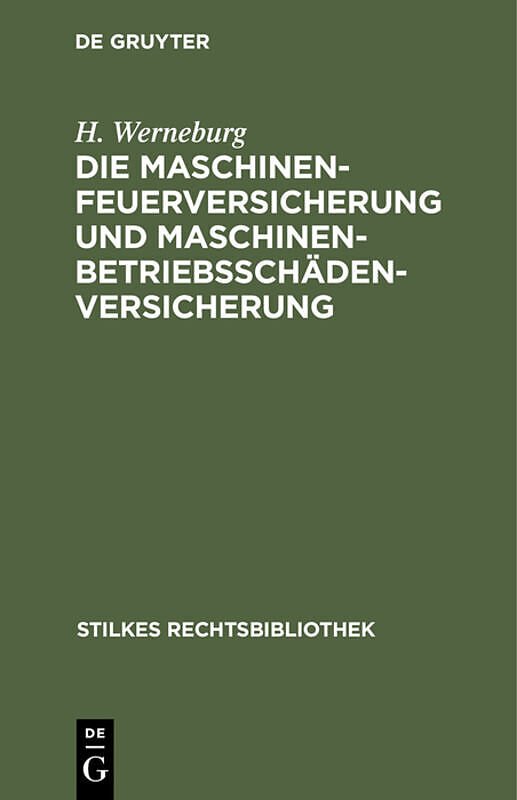 Keine ausführliche Beschreibung für "Die Maschinenfeuerversicherung und Maschinenbetriebsschädenversicherung" verfügbar. Inhalt Frontmatter -- Inhaltsverzeichnis -- Literatur und Abkürzungen -- A. Einleitung -- B. Das Reichsgesetz über den Versicheru...