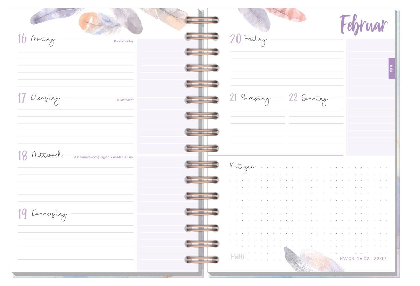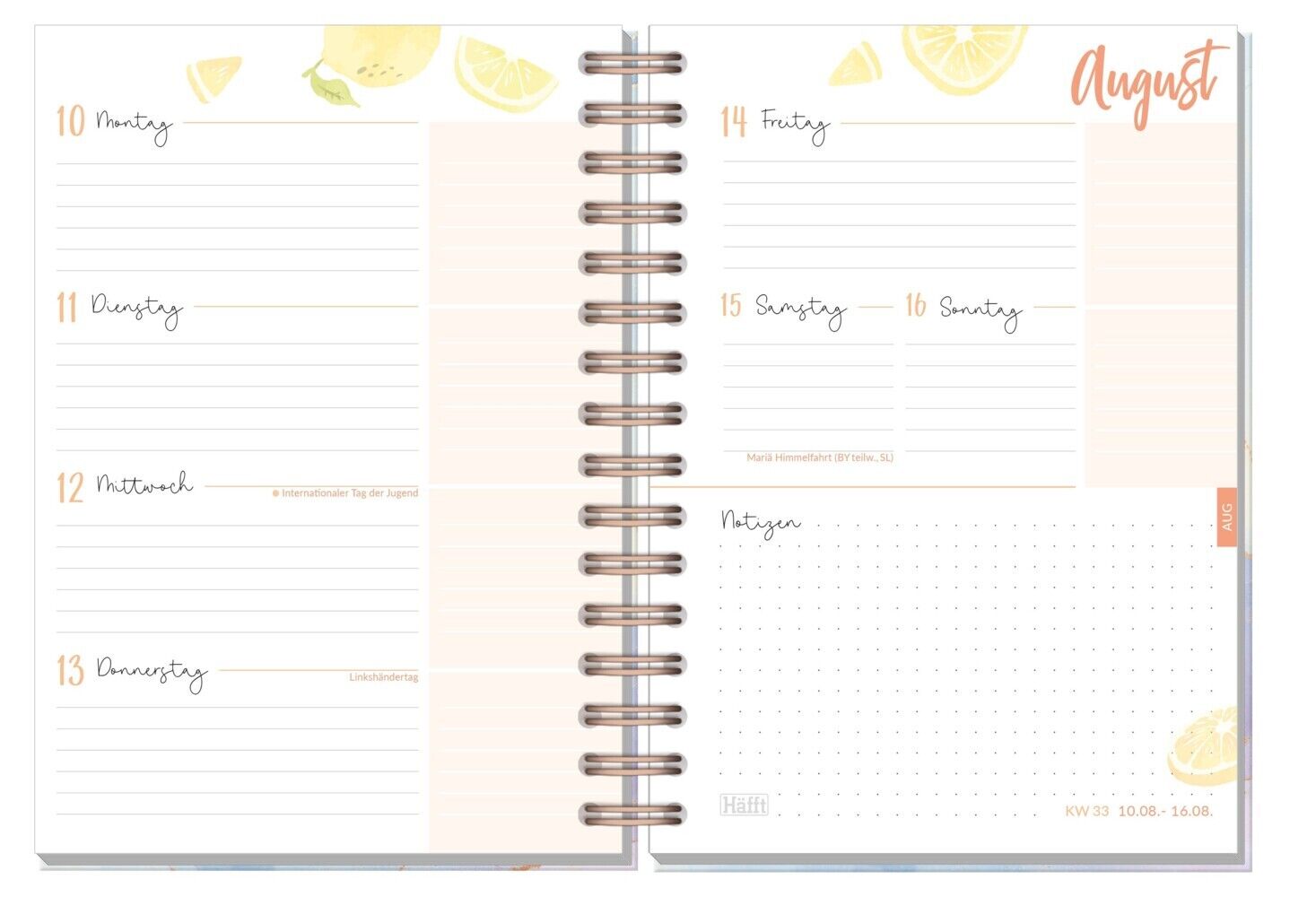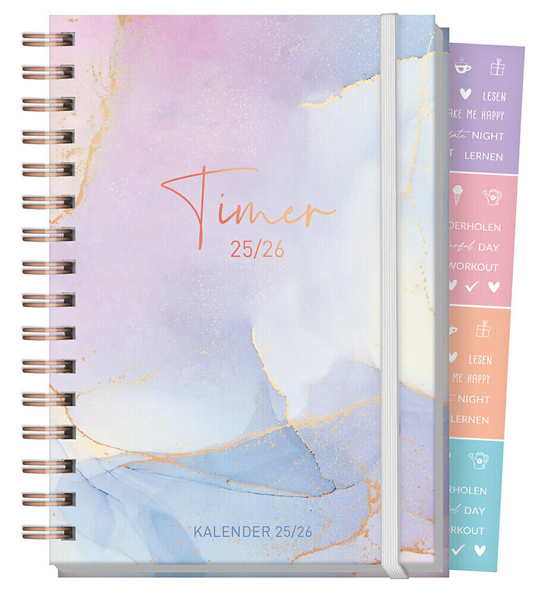 Schülerkalender, Laufzeit 14 Monate, August 2025 bis September 2026, immer Montag bis Sonntag auf einer Doppelseite, liebevoll illustriert mit Aquarellzeichnungen, viel Platz zur individuellen Gestaltung, mit Sprüchen, Format A5, 224 Seiten, Spiralbindung, ver...