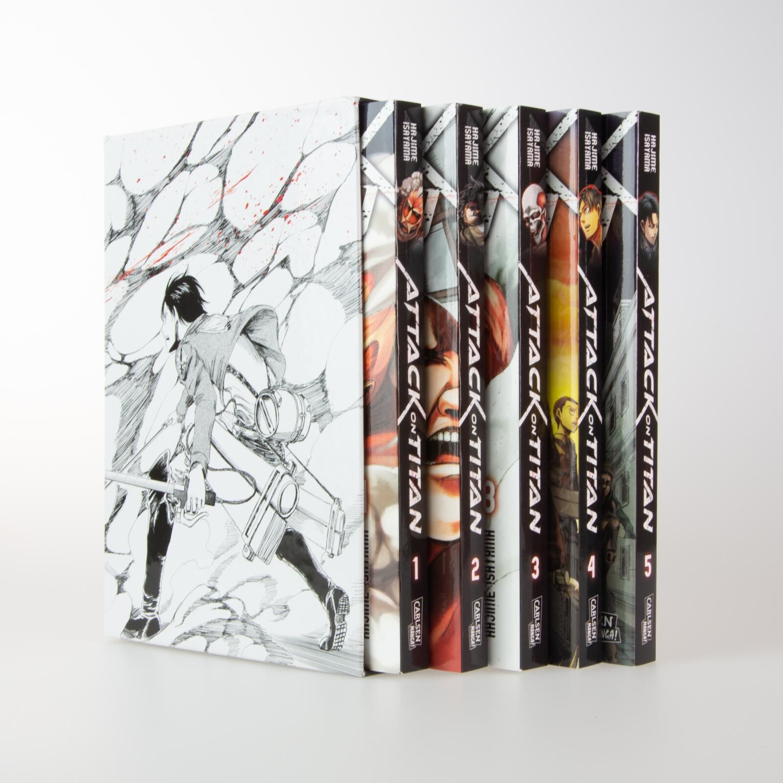 Diese exklusive Sonderedition beinhaltet die Bände 1 bis 5 der Serie ATTACK ON TITAN in einem schicken Sammelschuber! Als Extra ist das Abzeichen »Flügel der Freiheit« als Bügelbild beigelegt, das einzeln nicht zum Verkauf angeboten wird. Das ideale Starter-S...