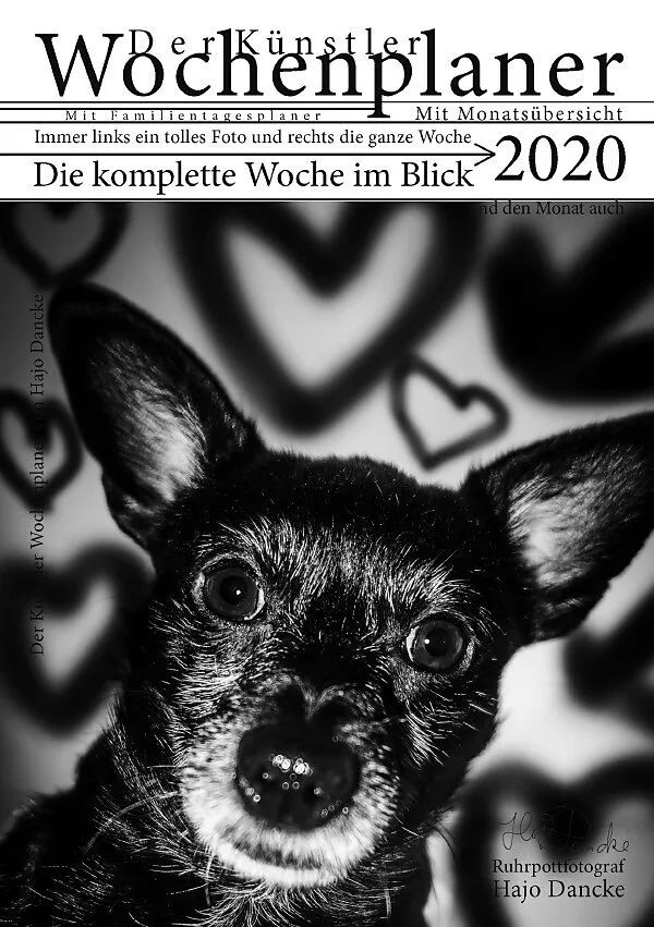 Das ist der Wochenplaner für das Jahr 2020. Du hast jede Woche ein neues Künstlerhundefoto drin und eine Monatsübersicht mit Monats Tagesplaner. Autorentext Als der Künstler Hajo Dancke, Ende 2018 für sich beschlossen hat, als Künstler seinen Weg zu gehen. Ahn...