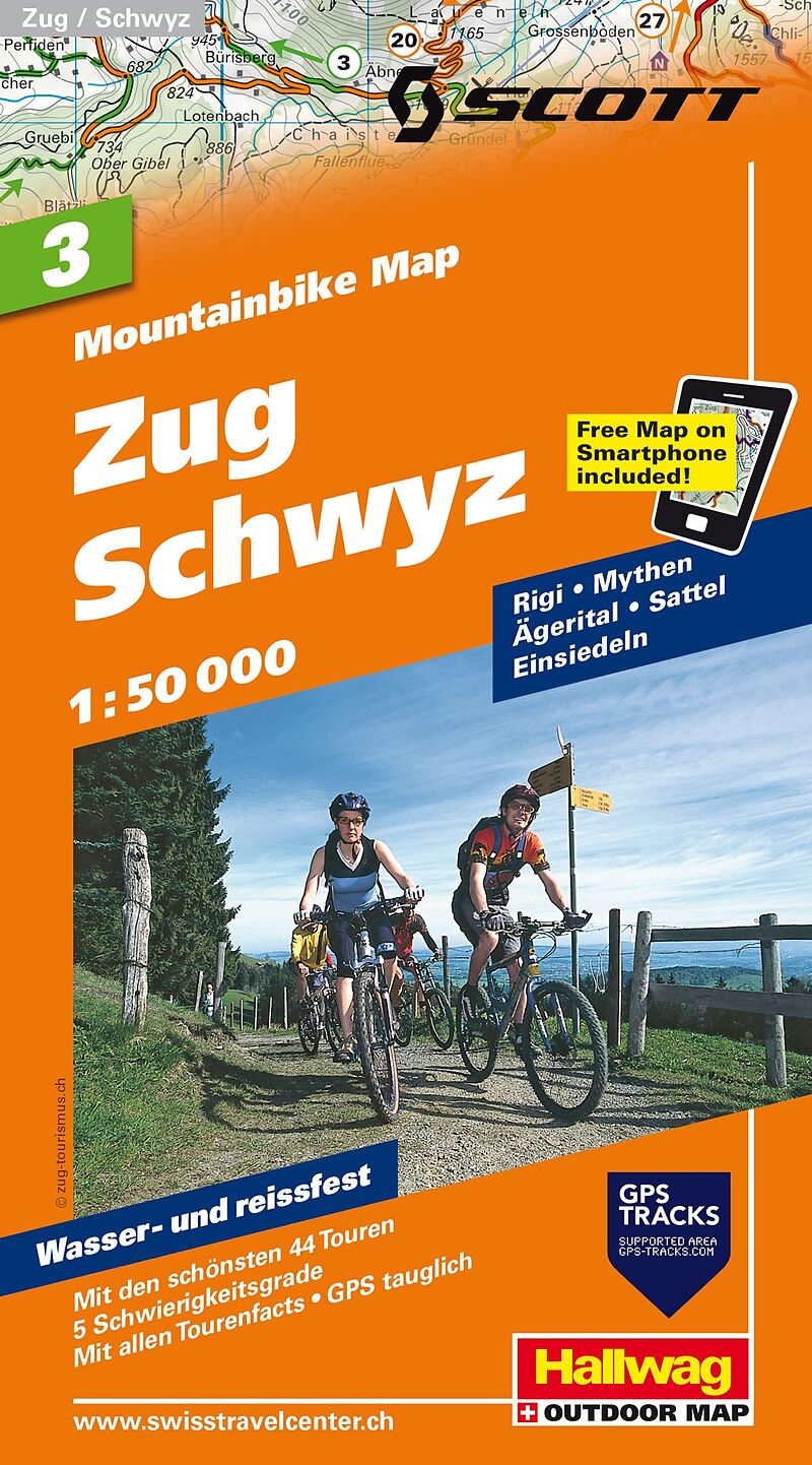 Hallwag Mountainbike-Karte 3 Zug, Schwyz 1:50.000