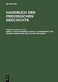 Each of the three volumes of the Handbook of Prussian History opens with chronological sections giving an overview of a period of Prussian history. These are followed by chapters arranged thematically to discuss major topics in the history of Brandenburg-Pruss...