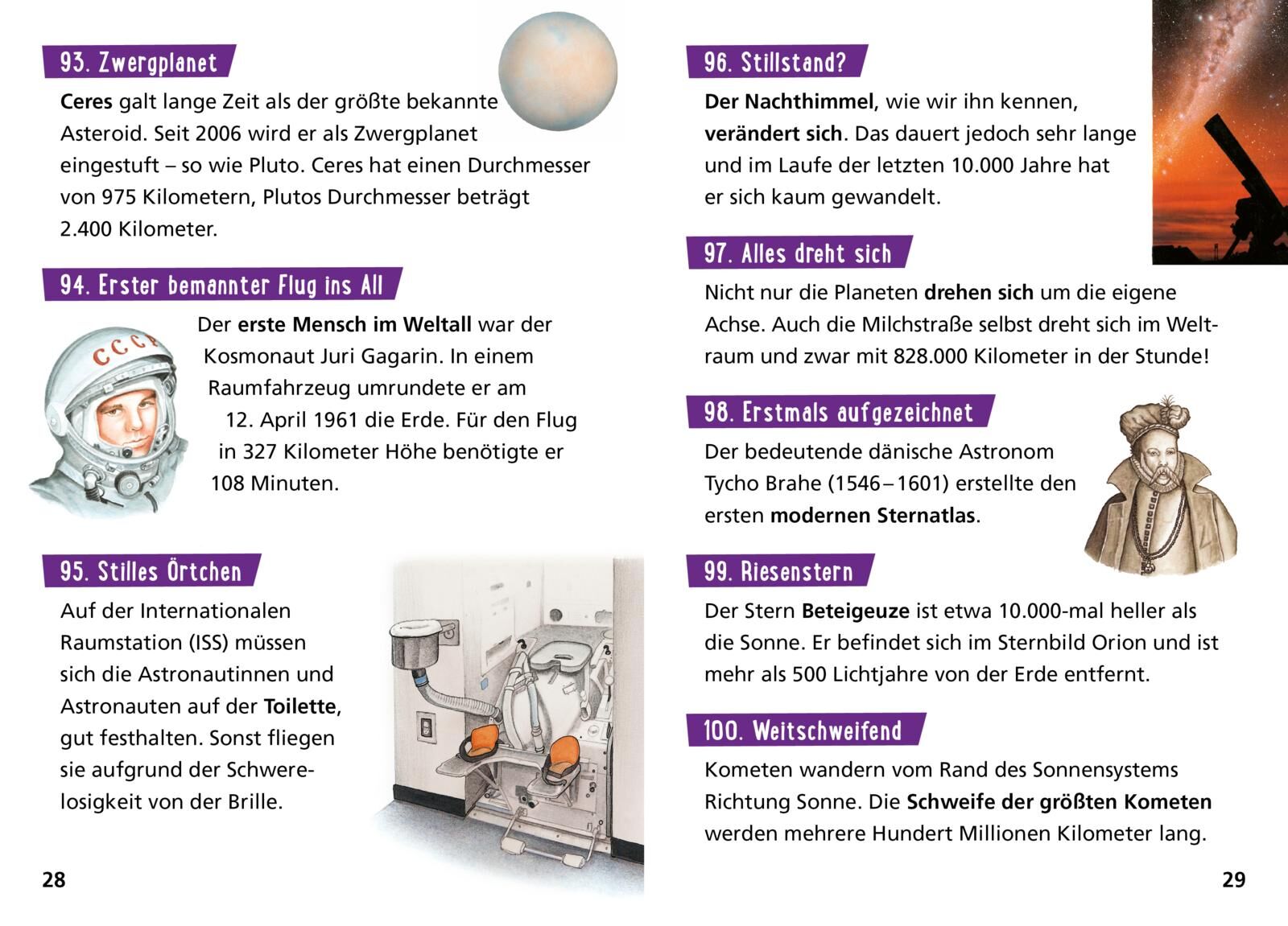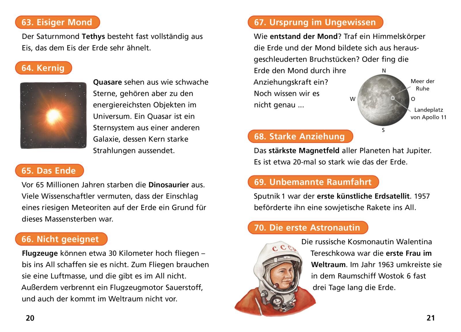 Fakten und Rekorde aus dem Weltall! Woher haben die Sternschnuppen ihren Namen? Welcher Himmelskörper braucht für die Umrundung unserer Sonne etwa 10.500 Jahre? Und was machen weiße Zwerge im Weltall? 100 erstaunliche Tatsachen zum Schmökern und Staunen stehe...