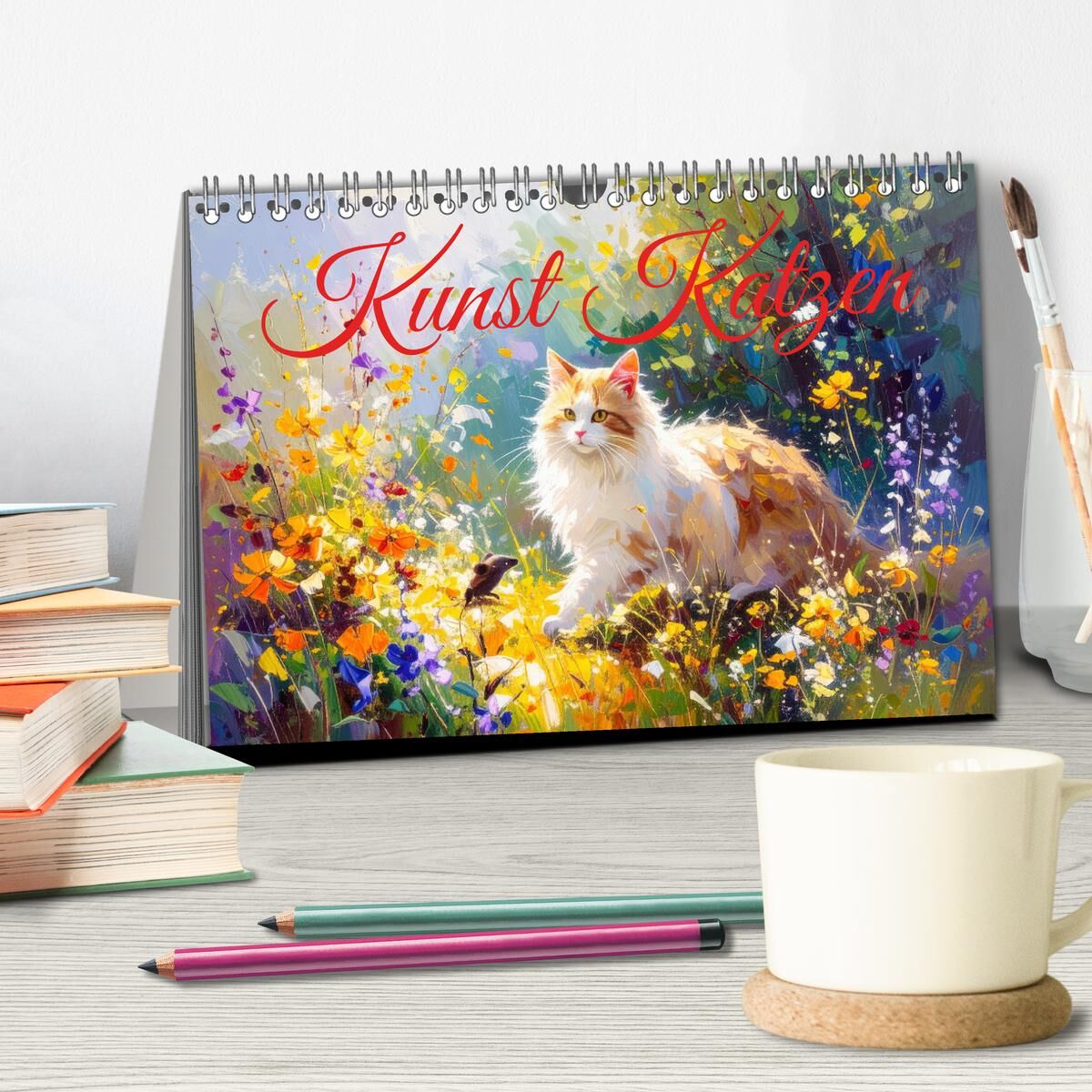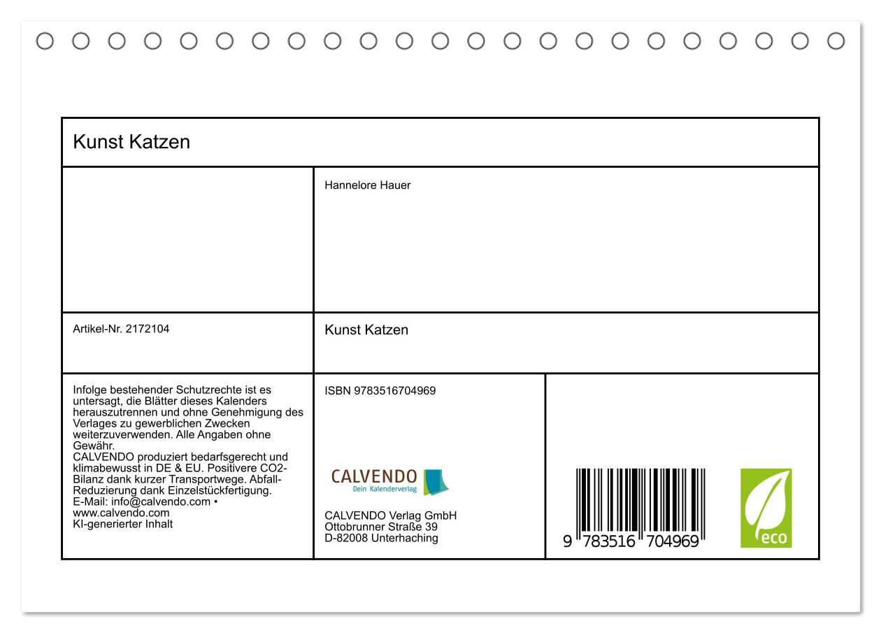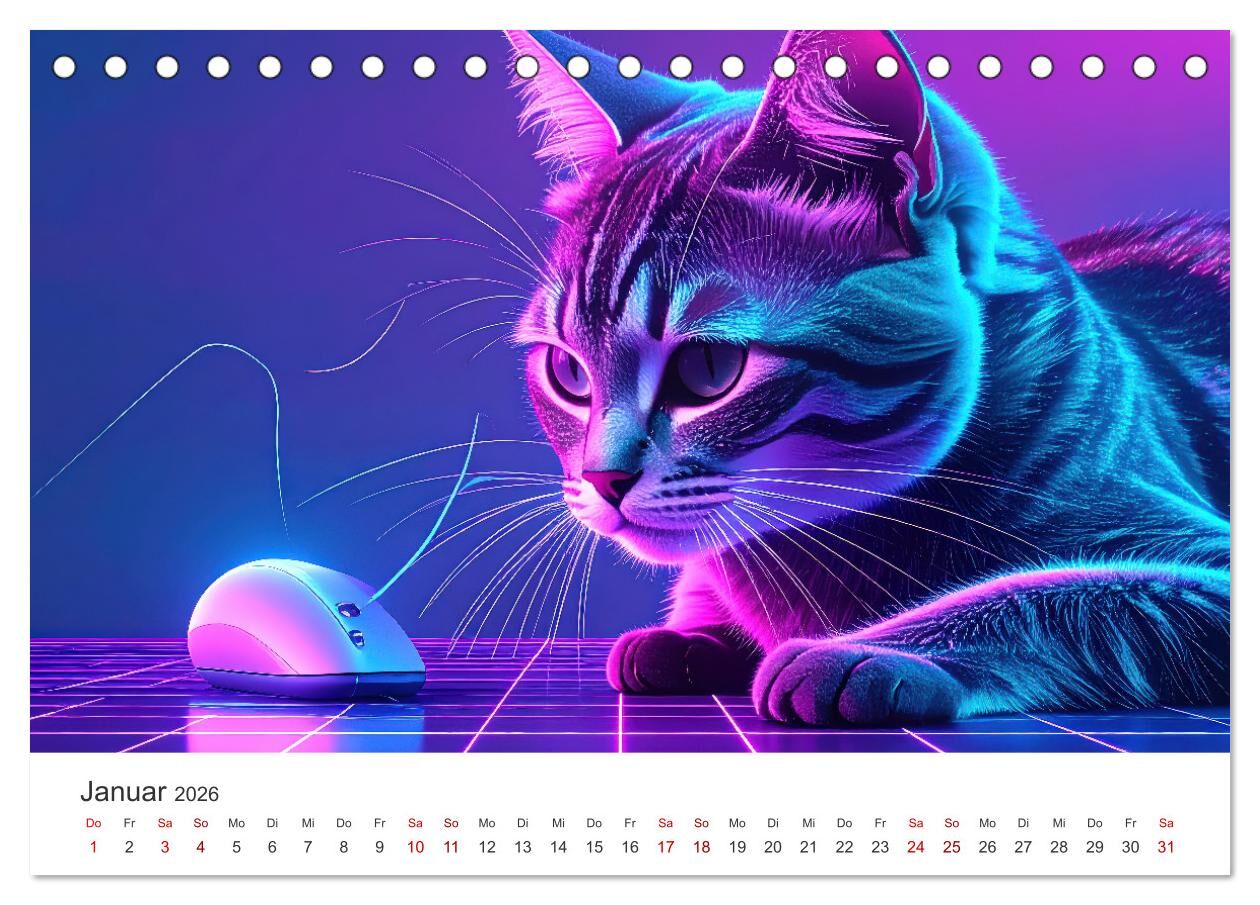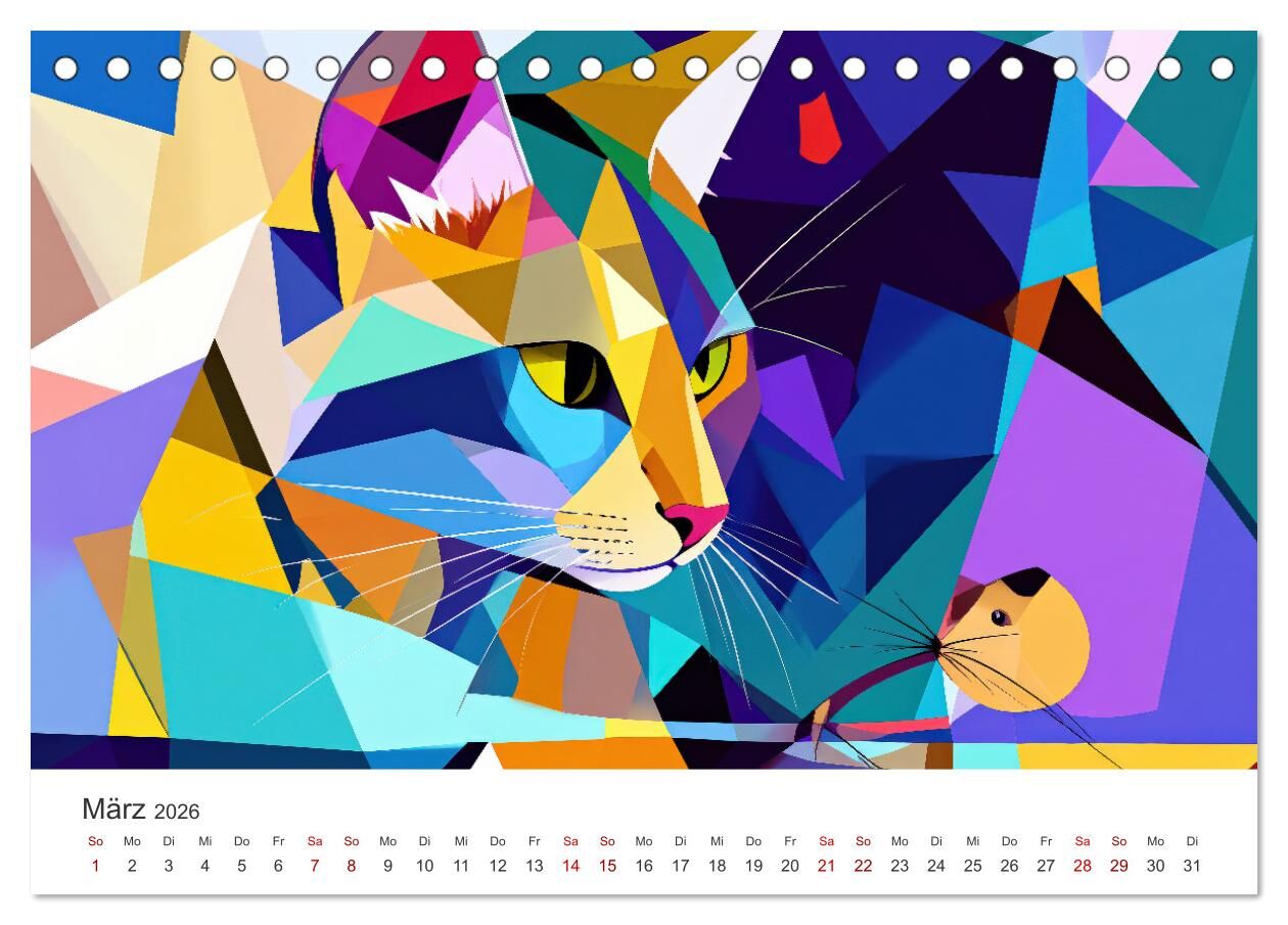 Kunst Katzen (Tischkalender 2026 DIN A5 quer), CALVENDO Monatskalender
