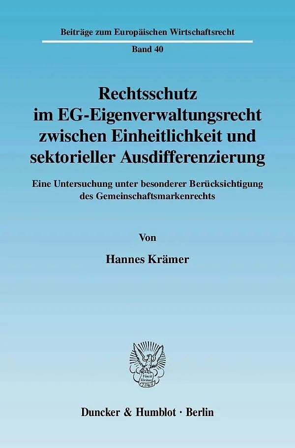 Der Autor behandelt das Phänomen der sektoriellen Ausdifferenzierung des Rechtsschutzes im EG-Eigenverwaltungsrecht am Beispiel des Gemeinschaftsmarkenrechts. Eingehend stellt Krämer die strukturellen sowie substantiellen Ausdifferenzierungen des Rechtsschutze...