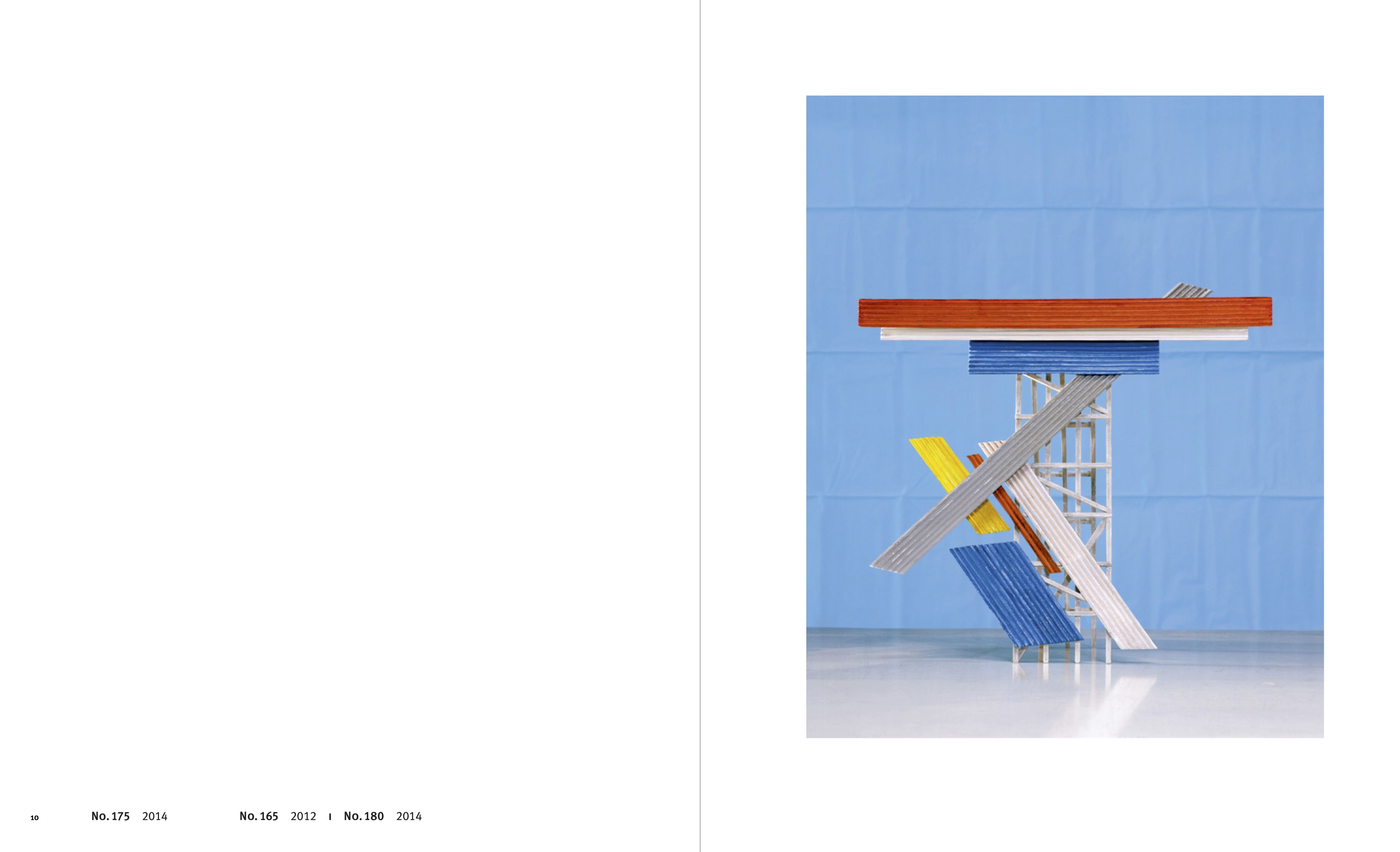 To make his works, Hannes Norberg (b. Worms, 1969; lives and works in Düsseldorf) constructs models designed for the camera's eye out of basic materials: architectural maquettes and situations suggesting landscapes. Drawing, graphic art, and sculptural design alternate with digital technologies. Diverse interlocking shapes, colors, media, and meanings coalesce in a structured visual field. The photographs illustrate the visual synthesis of construction and representation in the contemplation of things in light.