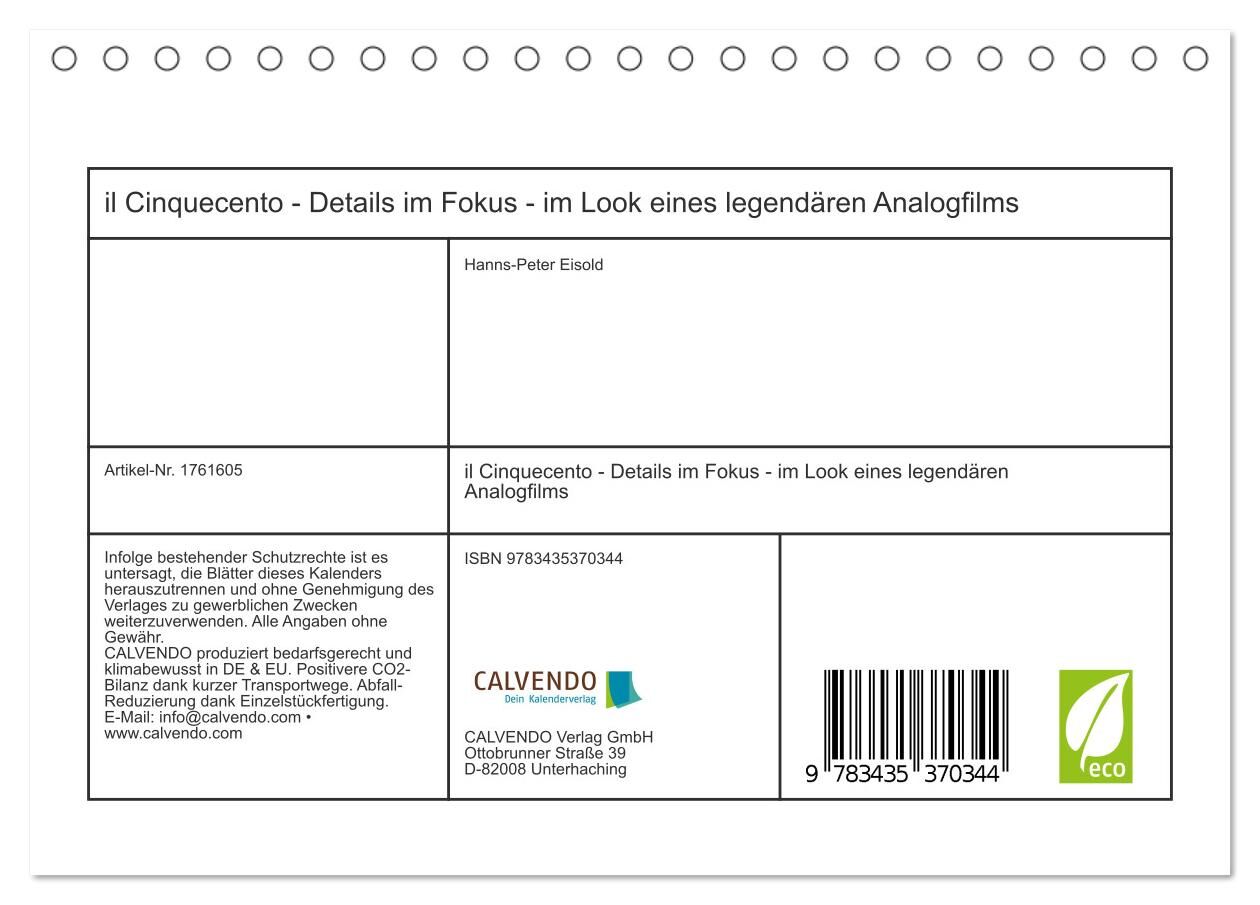 il Cinquecento - Details im Fokus - im Look eines legendären Analogfilms (Tischkalender 2025 DIN A5 quer), CALVENDO Monatskalender