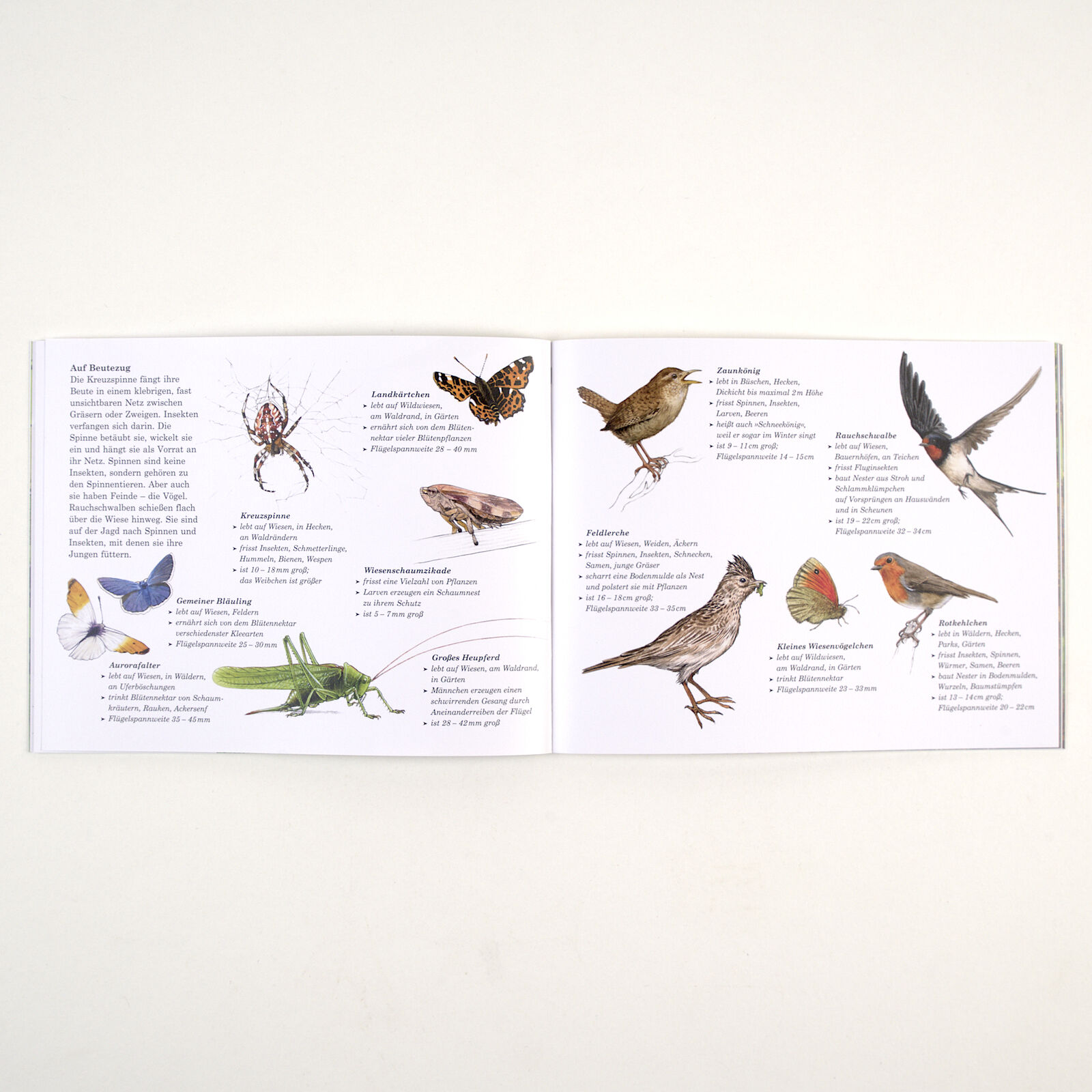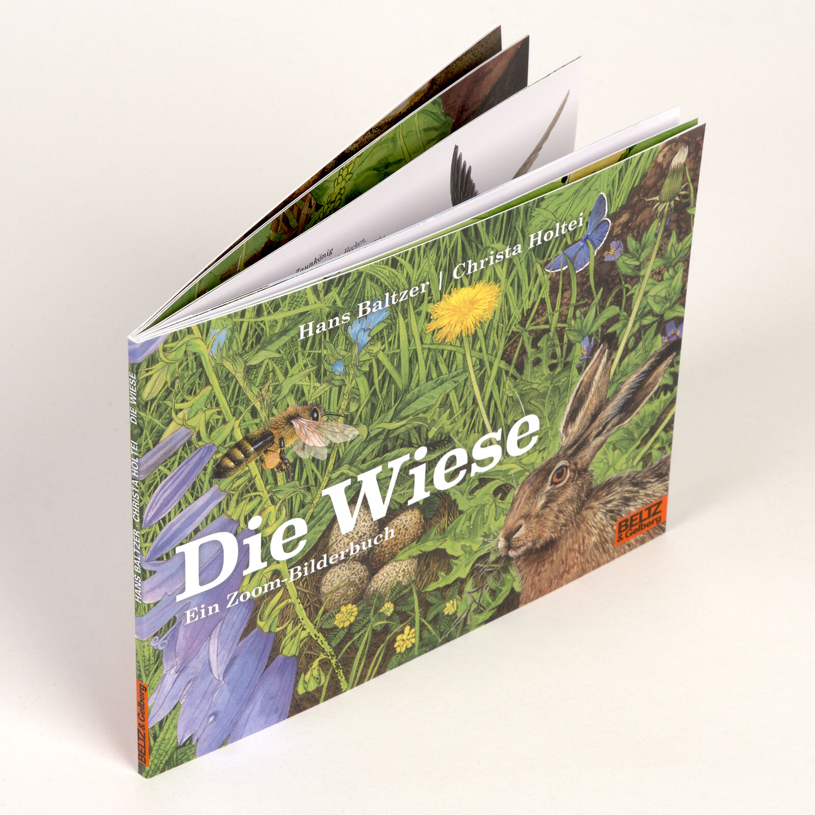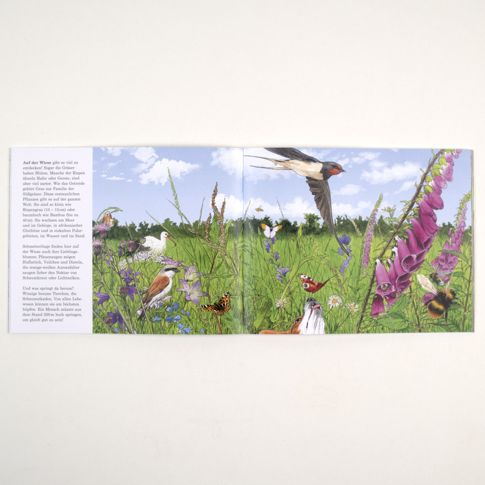 Der Mäusebussard späht hinab auf die Wiese hat er die Maus entdeckt, die zwischen den Gräsern umherhuscht? Wir folgen ihm und nähern uns Seite für Seite, bis wir ganz in die Wiese eintauchen. Und entdecken dort einen Kosmos mit über 100 Tieren und Pflanzen! Ei...