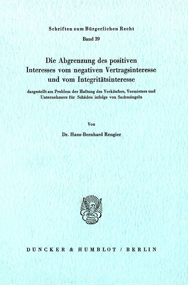Die Abgrenzung des positiven Interesses vom negativen Vertragsinteresse und vom Integritätsinteresse,