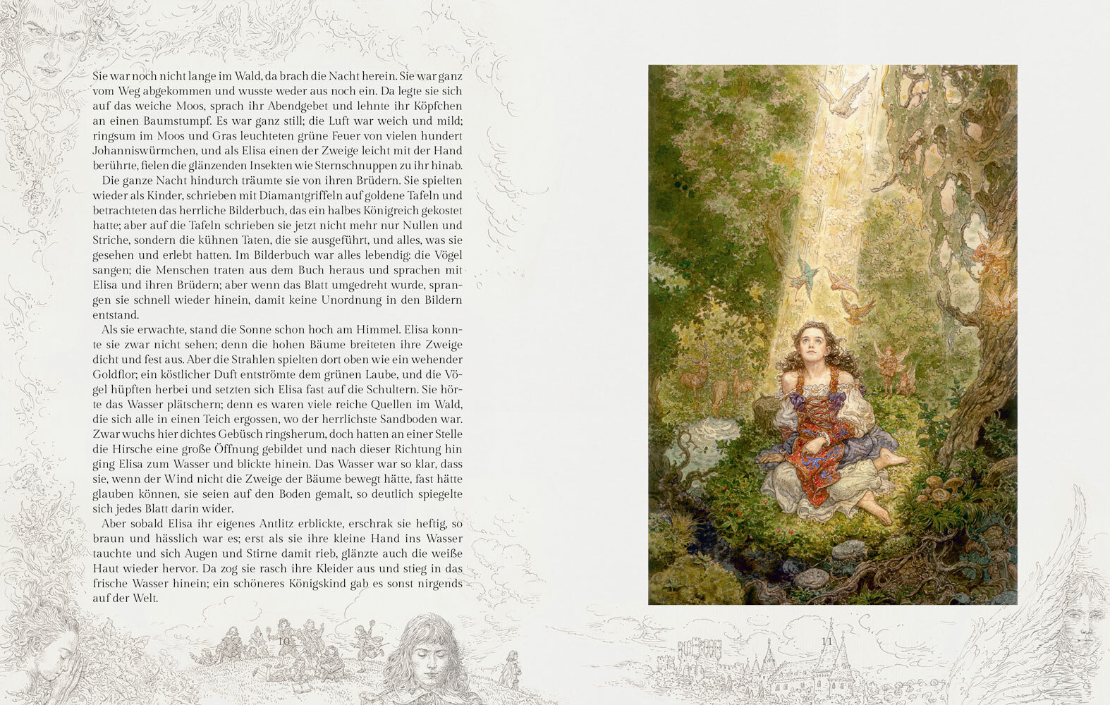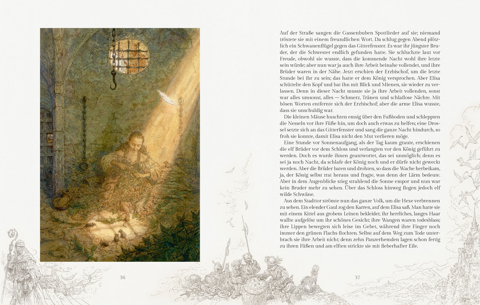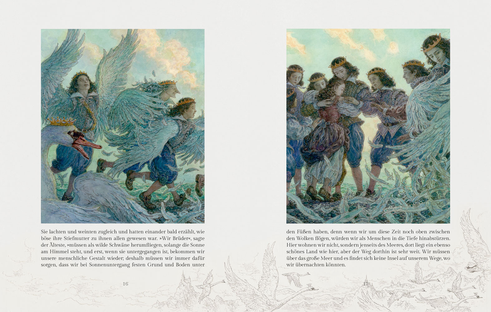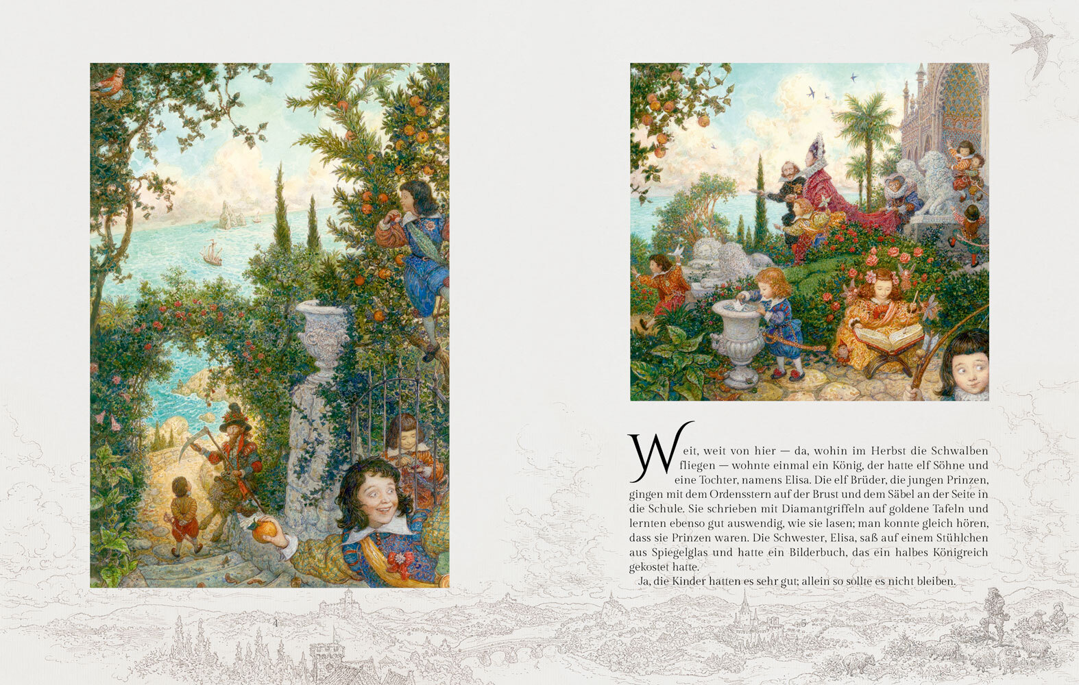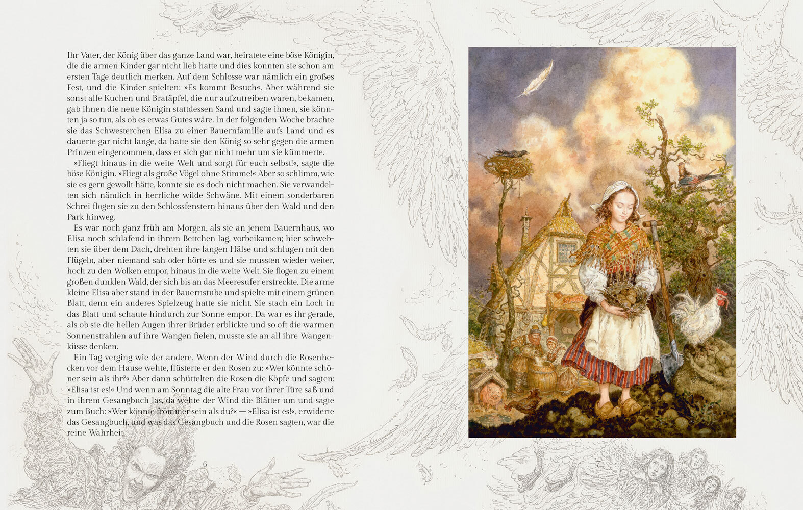 Weit, weit von hier, dort, wo die Schwalben hinfliegen, wenn es Winter wird, lebte einst ein König. Er hatte elf Söhne und eine Tochter - Elisa ... Die Kinder waren schön, freundlich und rein im Herzen, aber das rettete sie nicht vor dem Fluch der bösen Stiefm...