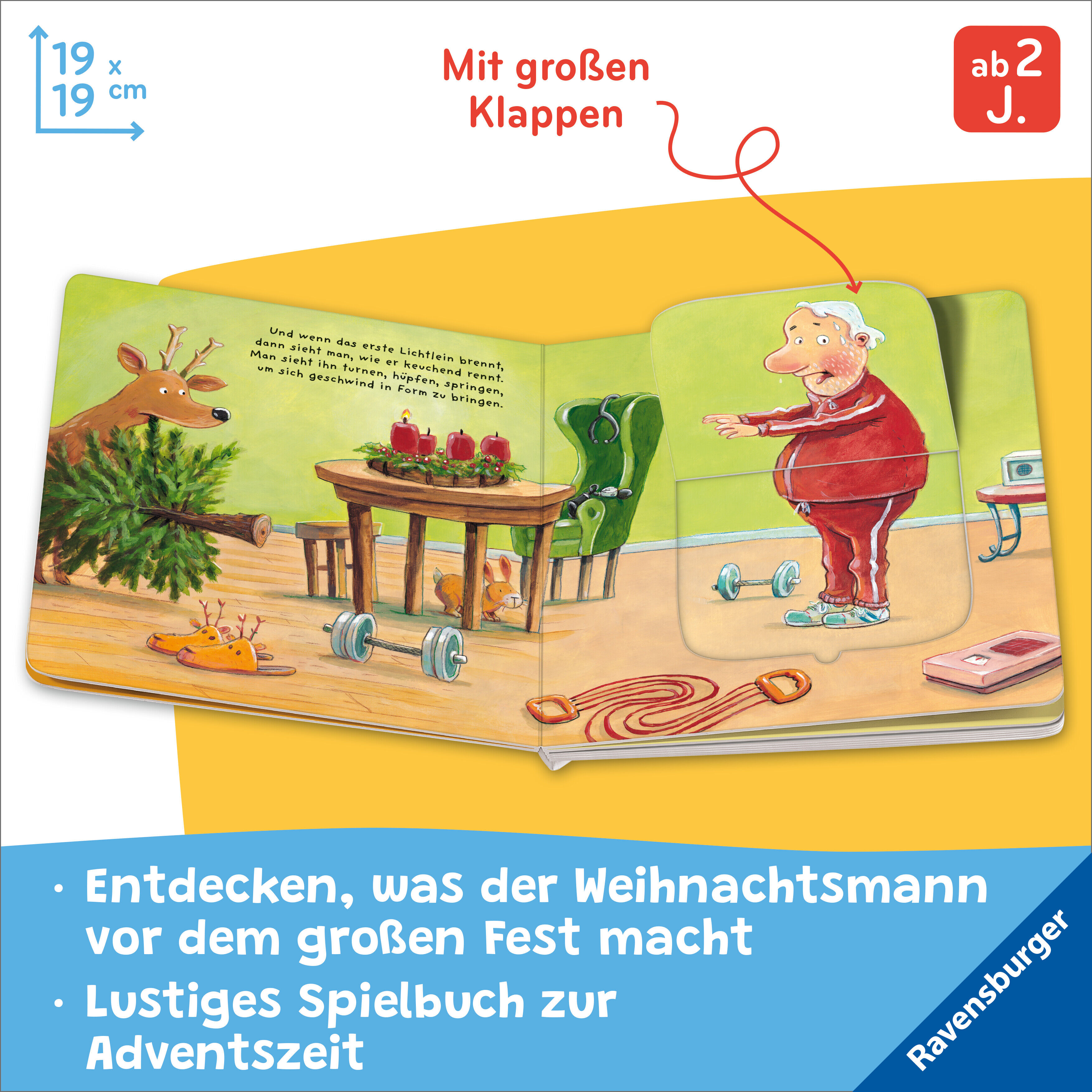 Schon bereit fürs Fest, lieber Weihnachtsmann? Bald ist Weihnachten. Und der Weihnachtsmann hat noch viel zu tun: seine Weihnachtsmütze waschen, die Reiseroute wählen, genug Proviant für die Schlittenfahrt vorbereiten und auch die Geschenke aufladen ... Gut, d...