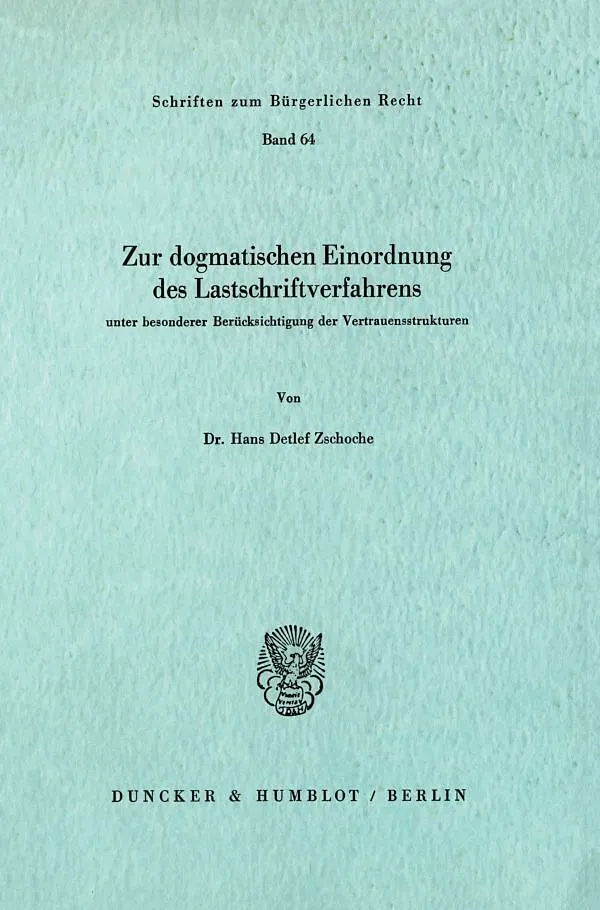 Zur dogmatischen Einordnung des Lastschriftverfahrens unter besonderer Berücksichtigung der Vertrauensstrukturen.