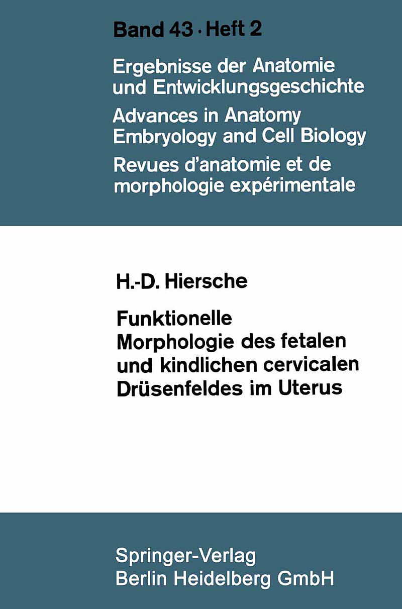 Das Endometrium cervicis uteri entwickelt sich aus dem mittleren Anteil der vereinigten Müllersehen Gänge, dem Utero-Vaginal-Kanal (Nagel, 1889, 1894; Vilas, 1933; Grosser, 1953; Gögl u. Lang, 1955, Watzka, 1961). Felix (1911) konnte schon bei 15 cm langen Fet...