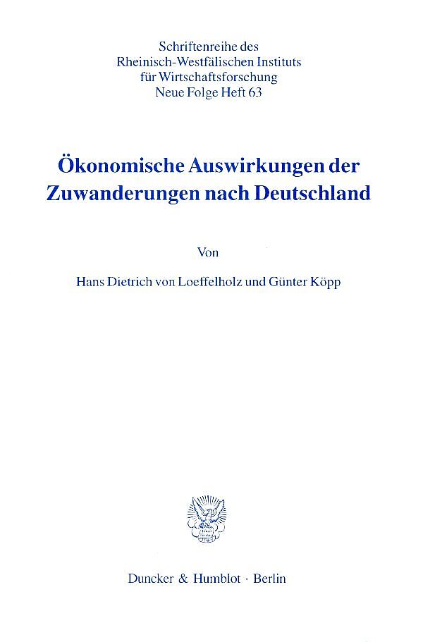 Das Interesse an der ökonomischen und gesellschaftlichen Bedeutung von Zuwanderungen hat in Politik, Wissenschaft und Gesellschaft in den letzten Jahren spürbar zugenommen. Dies gilt insbesondere in Deutschland als bevorzugtes Zielgebiet von Immigranten. Die W...