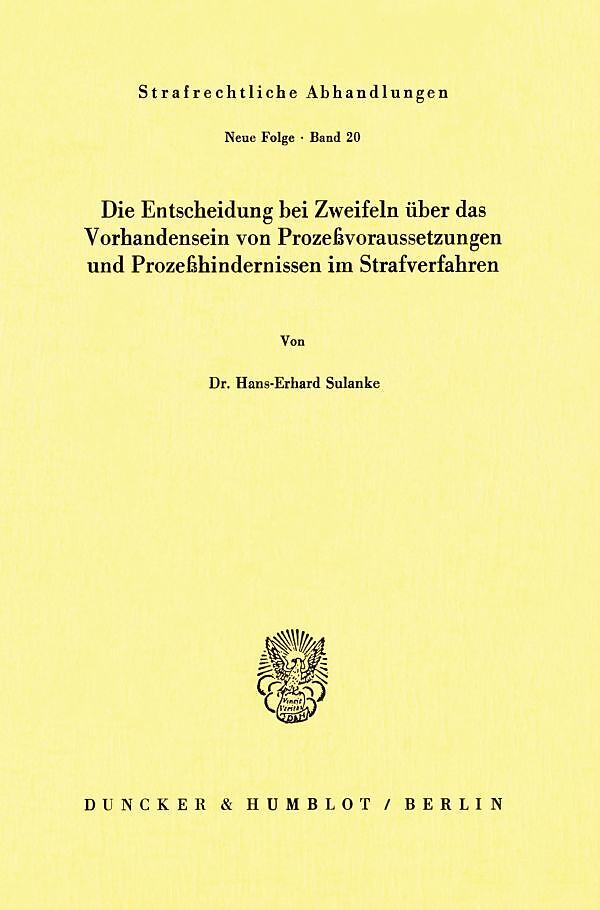 Die Entscheidung bei Zweifeln über das Vorhandensein von Prozeßvoraussetzungen und Prozeßhindernissen im Strafverfahren.