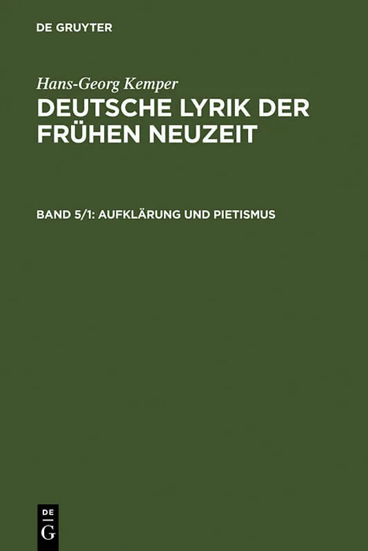 Hans-Georg Kemper: Deutsche Lyrik der frühen Neuzeit / Aufklärung und Pietismus