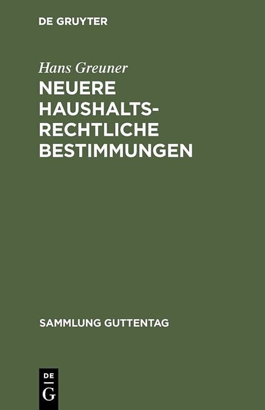Keine ausführliche Beschreibung für "Neuere haushaltsrechtliche Bestimmungen" verfügbar. Frontmatter -- Vorwort -- Inhaltsübersicht -- 1. Grundgesetz für die Bundesrepublik Deutschland vom 23. Mai 1949 -- II. Verwaltungsvorschriften -- Sachverzeichni...