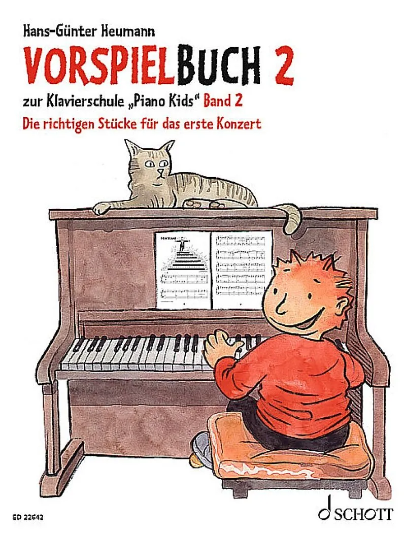 Mit der beliebten dreibändigen Klavierschule Piano Kids von Hans-Günter Heumann lernen SchülerInnen (ab etwa 6 Jahren) seit Jahrzehnten mit viel Fantasie und Kreativität die Grundlagen des Klavierspiels. Im Jahr 2014 wurde die Schule einer Revision unterzogen und in einer überarbeiteten und erweiterten Neuauflage herausgebracht: Neue Lieder und Illustrationen bringen frischen Wind in das Standardwerk und passen es an die Lebensrealität heutiger Klavieranfänger an. Das pädagogische Konzept der Piano Kids, das sich aus dem Zusammenspiel aus Lehrbüchern und den ergänzenden Aktionsbüchern ergibt, wird nun durch auf die Schulbände abgestimmte Vorspielbücher ergänzt. Diese neuen Vorspielbücher bieten eine weite Bandbreite an sehr leichter Anfängerliteratur, die sich an den Fortschritten der Lehrbücher orientieren und ab der ersten Klavierstunde die kleinen Pianisten mit altersgerechten Spielstücken versorgen. Bekannte Melodien aus dem Volksgut, peppige Kompositionen im Stil von Pop, Rock und Jazz sowie die ersten kleinen Meisterwerke von Mozart, Beethoven & Co. motivieren die Schüler immer wieder aufs Neue und bringen Abwechslung in den Unterricht. Band 1 (ED 22641) beginnt mit einigen vierhändigen Stücken, die die Anfänger schnell motivieren werden, ohne sie dabei zu überfordern. Alle Stücke beschränken sich auf den Fünftonraum, decken dabei aber das gesamte stilistische Spektrum ab: von Volksmelodien, wie Der Kuckuck und der Esel, über leichte klassische Stücke von Komponisten wie Gurlitt, Türk oder Bartók, bis hin zu modernen Kompositionen aus den Bereichen Pop, Rock und Jazz. Band 2 (ED 22642) erweitert parallel zur Klavierschule Band 2 den Tonumfang und den rhythmischen Anspruch. Neben dem breiten Spektrum an Liedern aus dem Folk-, Rock- und Pop-Bereich, lernen die kleinen Musiker bereits die ersten, leichten Klavierwerke von Mozart, Beethoven & Co. kennen. Viele kleine Leckerbissen werden die Pianisten nachhaltig motivieren, wie beispielsweise der Baby Elephant Walk von Henri Manchini oder The Entertainer von Scott Joplin. Diese Stücke wurden von Hans-Günter Heumann so bearbeitet, dass sie die Kinder nicht überfordern, sondern motivieren beim Spielen dieser berühmten Melodien. Schwierigkeitsgrad: 1