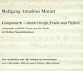 Der Katalog enthält Beschreibungen für alle ausgestellten Stücke, darunter die bedeutendsten Autographe aus den beiden Berliner Häusern - fast alle großen Opern, die Pariser und die Jupiter-Sinfonie, die große Messe in c-Moll, Klavier- und Kammermusikwerke. De...
