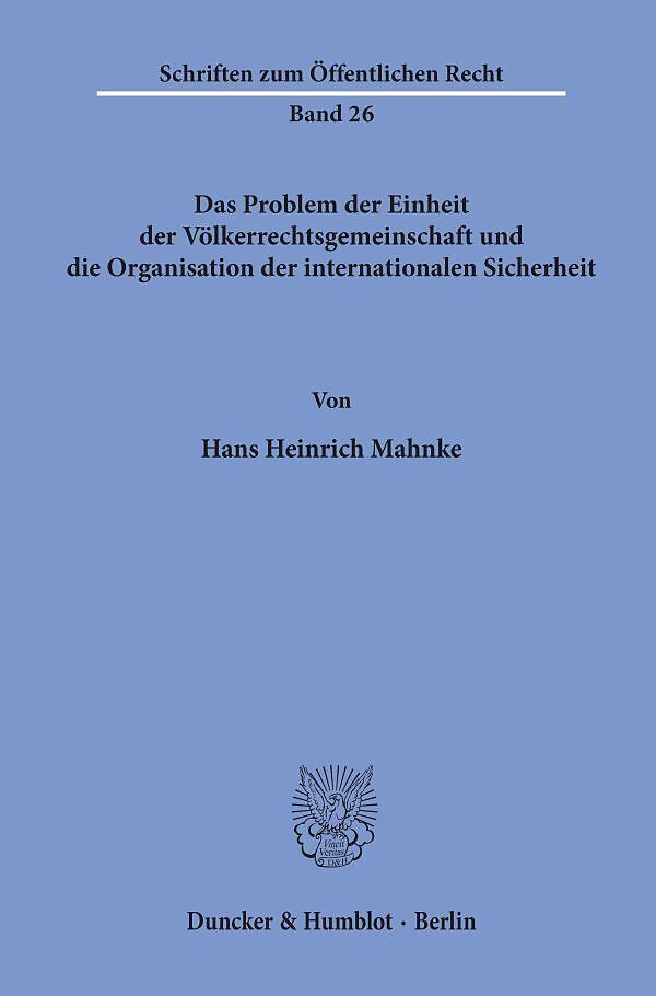Das Problem der Einheit der Völkerrechtsgemeinschaft und die Organisation der internationalen Sicherheit.