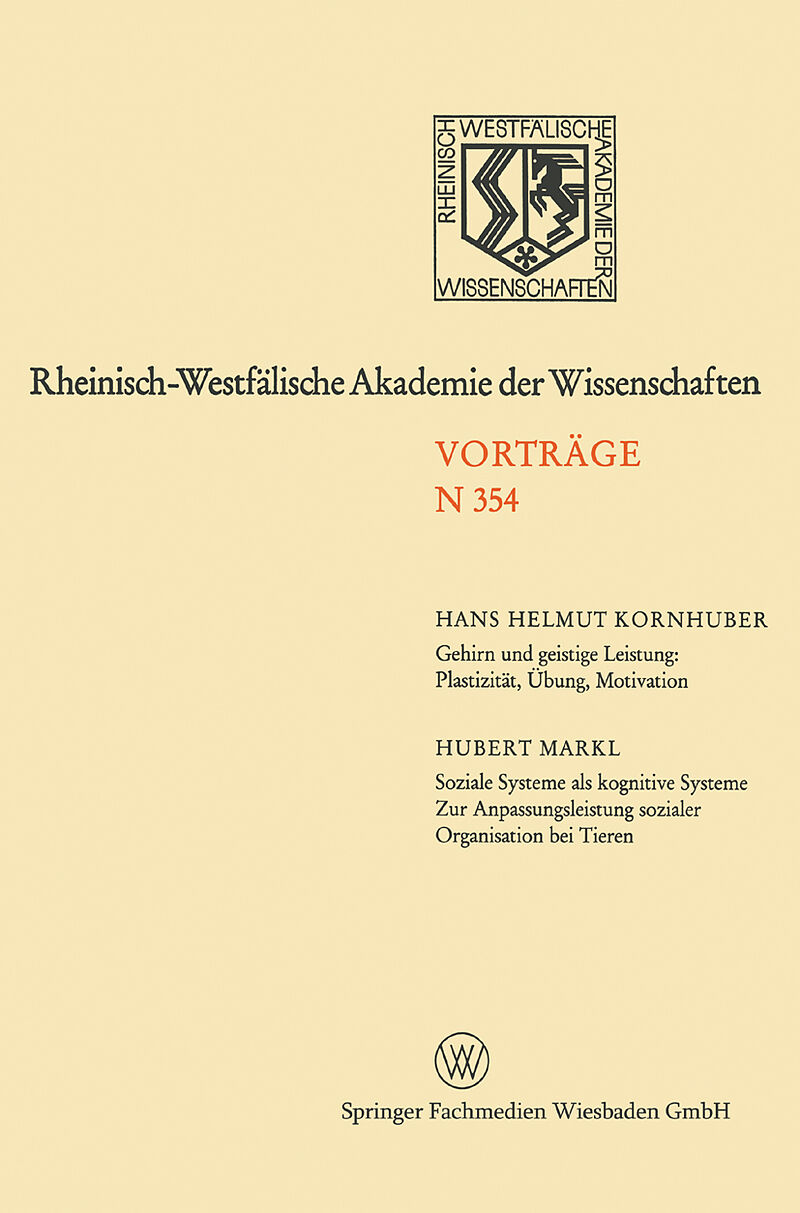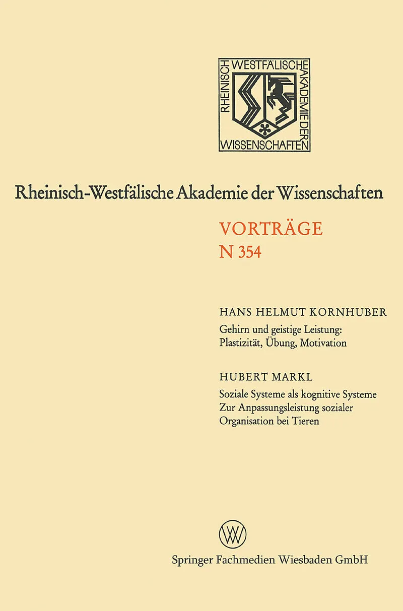 InhaltGehirn und geistige Leistung: Plastizität, Übung, Motivation.- Diskussionsbeiträge.- Soziale Systeme als kognitive Systeme Zur Anpassungsleistung sozialer Organisation bei Tieren .- Diskussionsbeiträge.