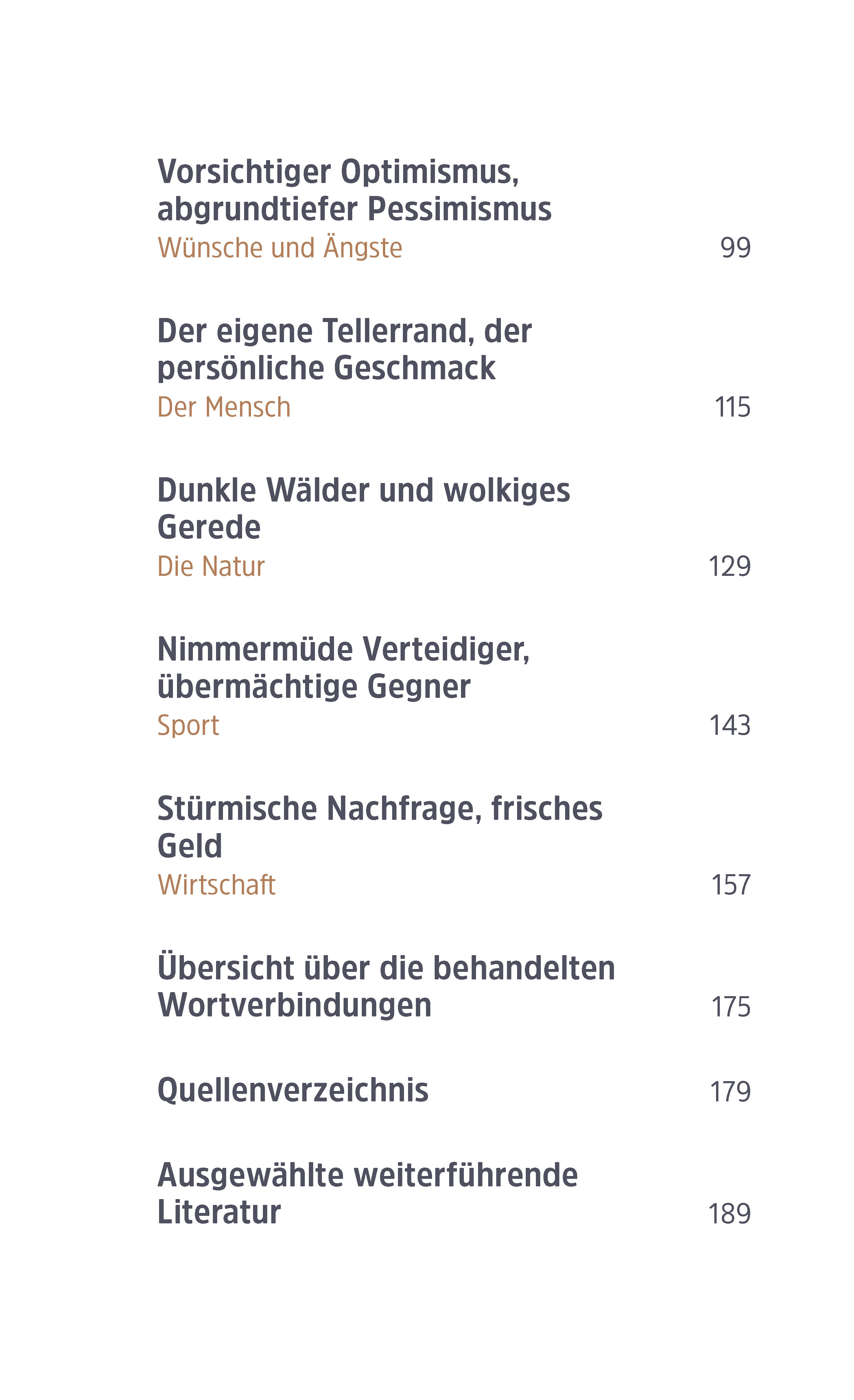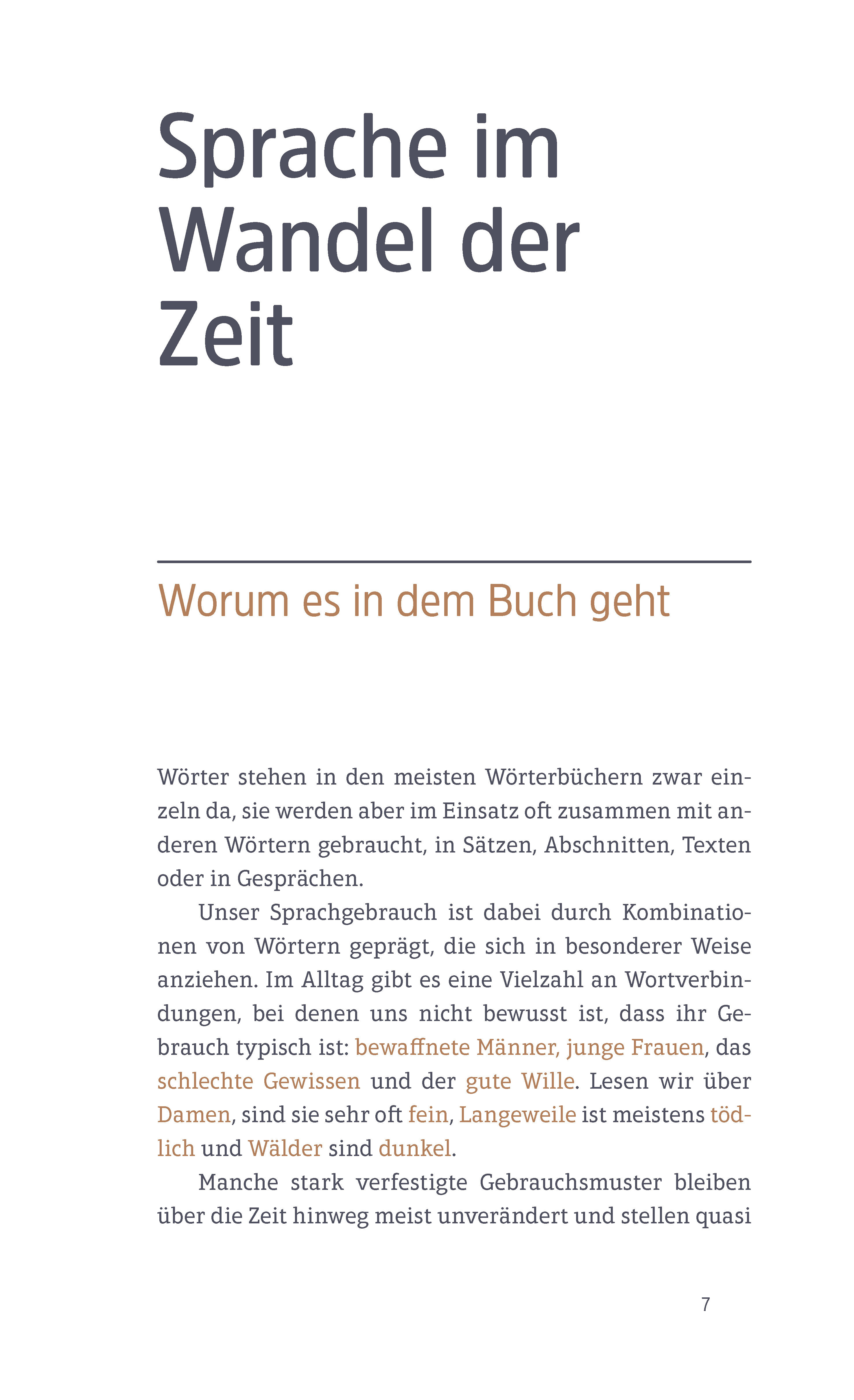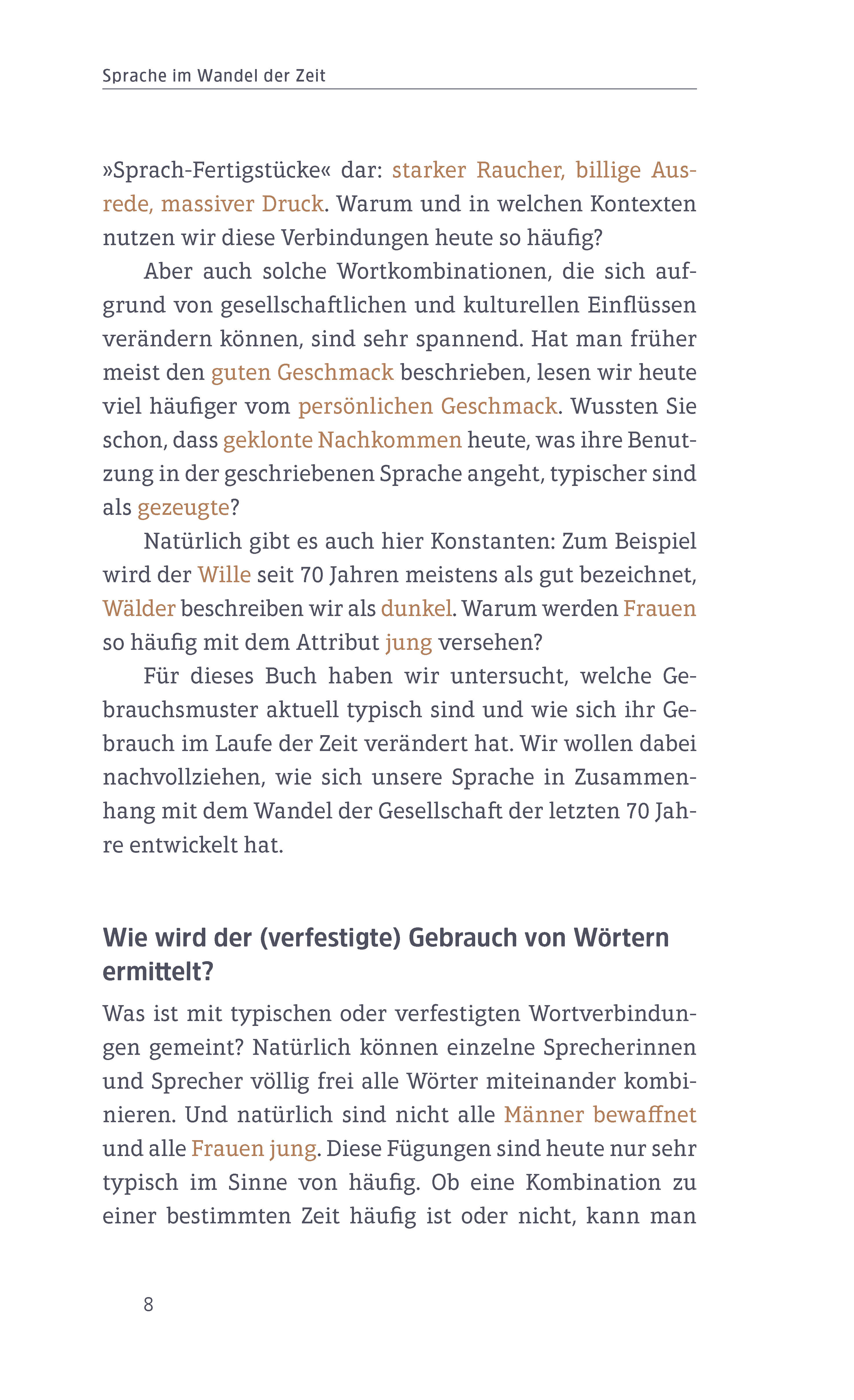 Wörter werden nicht einzeln gebraucht, sondern in mehr oder weniger festen Verbindungen mit anderen Ausdrücken: wilde Jahre, bewaffnete Männer, junge Frauen, schlechtes Gewissen. Diese Wortverbindungen sind sofort erkennbar und etabliert. Sie spiegeln gesellsc...