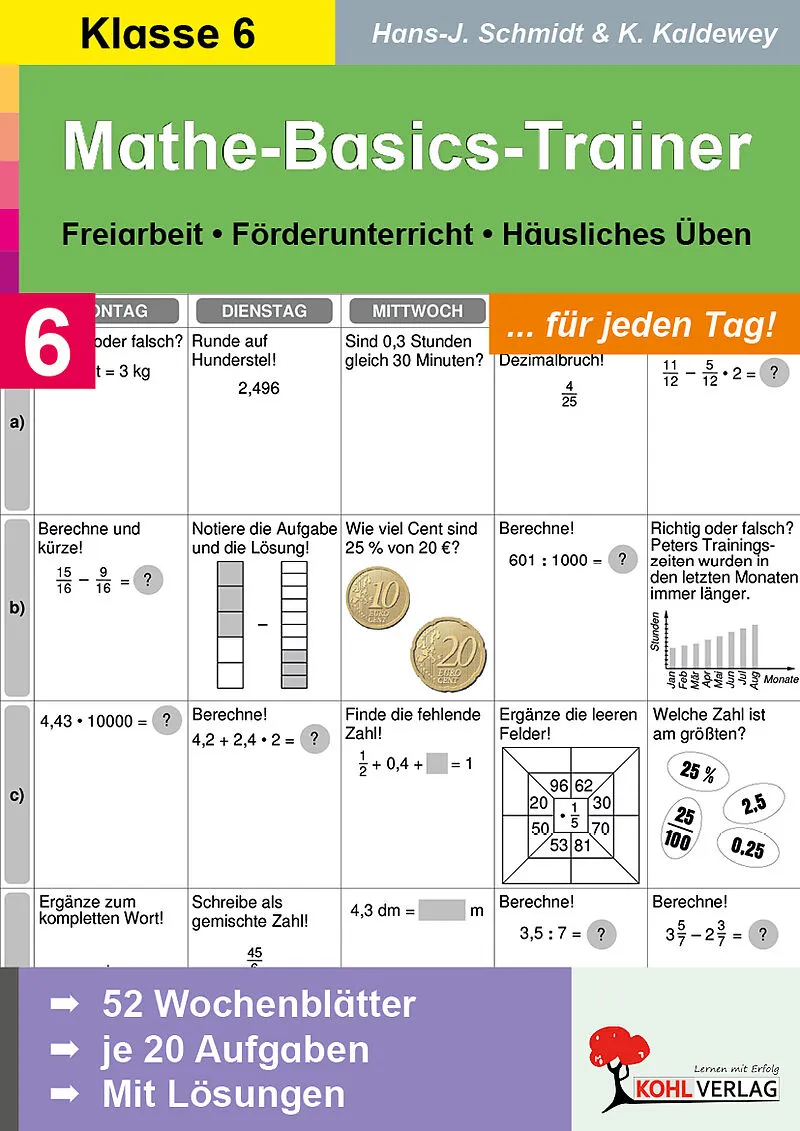 Unser Arbeitsheft für Mathematik in der Sekundarstufe Klasse 6 bietet vielfältige Übungsaufgaben zur Wiederholung, Stärkung und Festigung grundlegender mathematischer Kompetenzen. Der Band umfasst 52 Wochenblätter mit jeweils 20 Aufgaben (4 pro Wochentag), ide...
