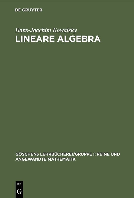 Keine ausführliche Beschreibung für "Lineare Algebra" verfügbar. Inhalt Frontmatter -- Vorwort -- Inhaltsverzeichnis -- Einleitung -- Erstes Kapitel. Grundbegriffe -- Zweites Kapitel. Unterräume, Basis, Koordinaten -- Drittes Kapitel. Abbildungen -- ...