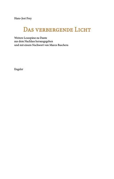 Der im Frühjahr 2023 verstorbene Zürcher Literaturwissenschaftler Hans-Jost Frey hat 2008 ein Dante-Buch mit dem Untertitel "Fünfundzwanzig Lesespäne" publiziert. Im vorliegenden Buch veröffentlichen wir aus dem Nachlass weitere 14 Kapitel, die ebenfalls Dante...