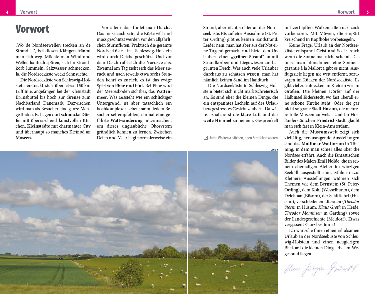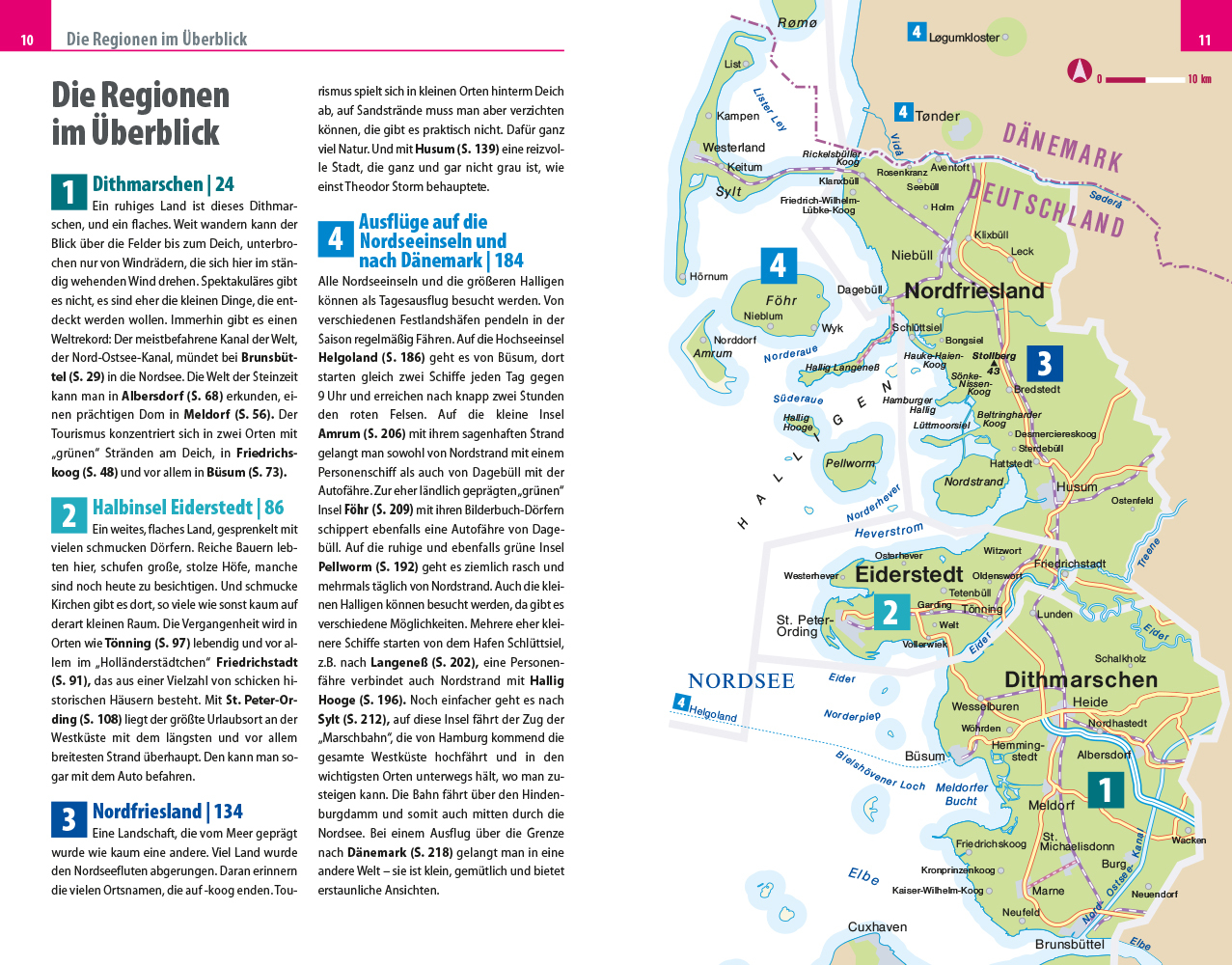 Schleswig-Holsteins Nordseeküste erstreckt sich über etwa 150 km Luftlinie angefangen bei der Kleinstadt Brunsbüttel bis hoch in den Norden zur dänischen Grenze. Dazwischen finden Reisende Kleinstädte mit charmanten Innenstädten, Dörfer mit kunstvollen Kirchen...
