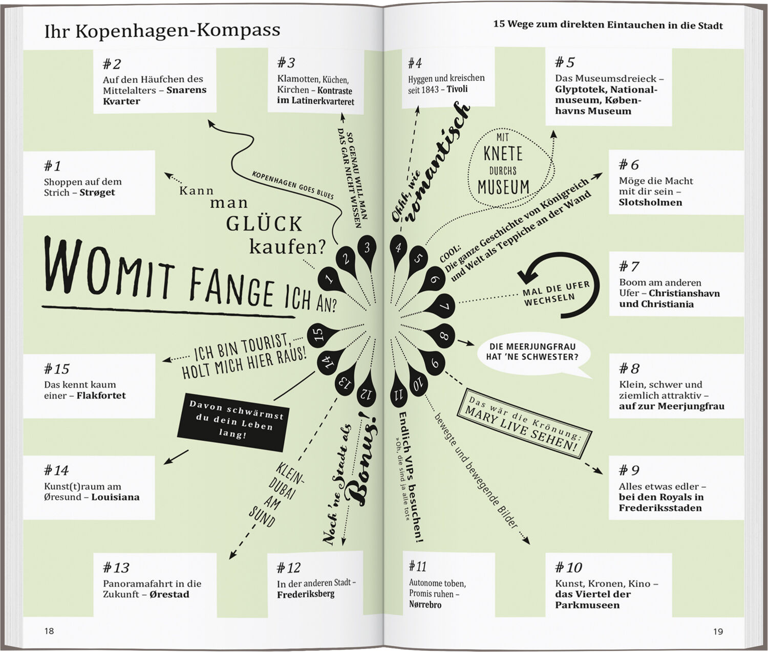 In der südlichsten Stadt Skandinaviens widerlegen die weltoffenen Kopenhagener jedes Klischee vom kühlen Norden, ein bisschen ausgeflippt im Latinerkvarteret, alternativ und multikulti in den Brückenvierteln, volkstümlich im Tivoli, anderswo geht es »hyggelig...