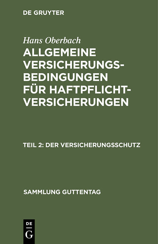Keine ausführliche Beschreibung für "Der Versicherungsschutz" verfügbar. Frontmatter -- Vorwort -- Inhaltsübersicht -- Abkürzungsverzeichnis -- A. Vorbemerkung -- B. Wortlaut der Allgemeinen Versicherungs-Bedingungen -- C. Erläuterungen zu den Allgem...