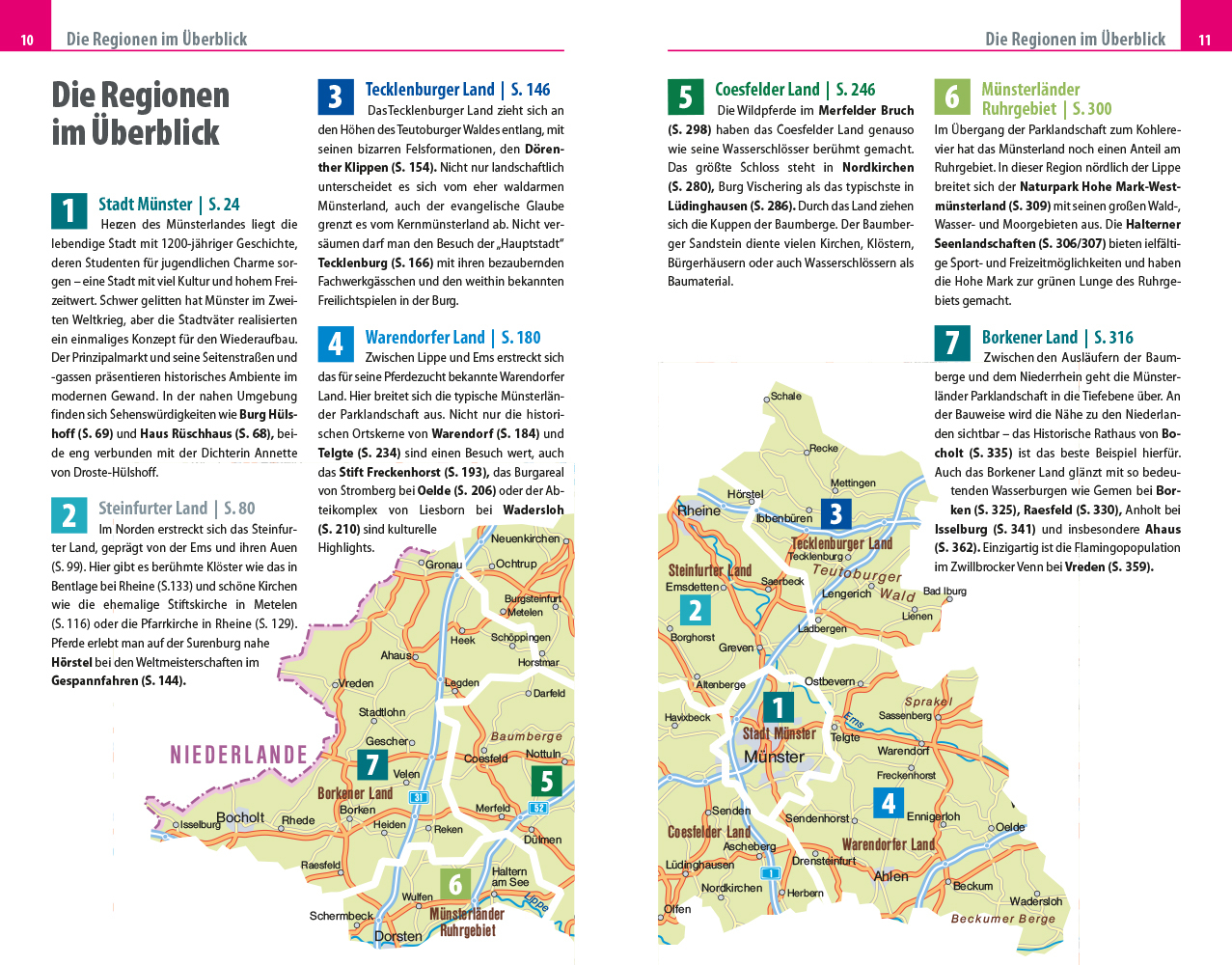 Das Land ist weit, aber nicht »platt«, so würden es die Ureinwohner auf Mönsterländer Platt sagen. Die herrliche Parklandschaft des Münsterlandes besteht aus Flüssen und Feldern, Wiesen und Waldstücken. Eingebettet in die Landschaft liegen Wasserburgen, Schlös...