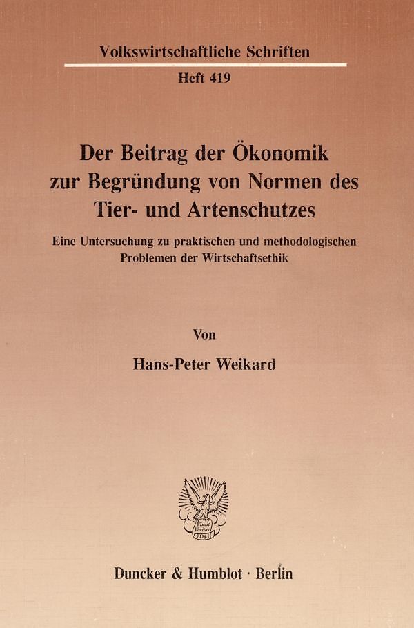 Der Beitrag der Ökonomik zur Begründung von Normen des Tier- und Artenschutzes.