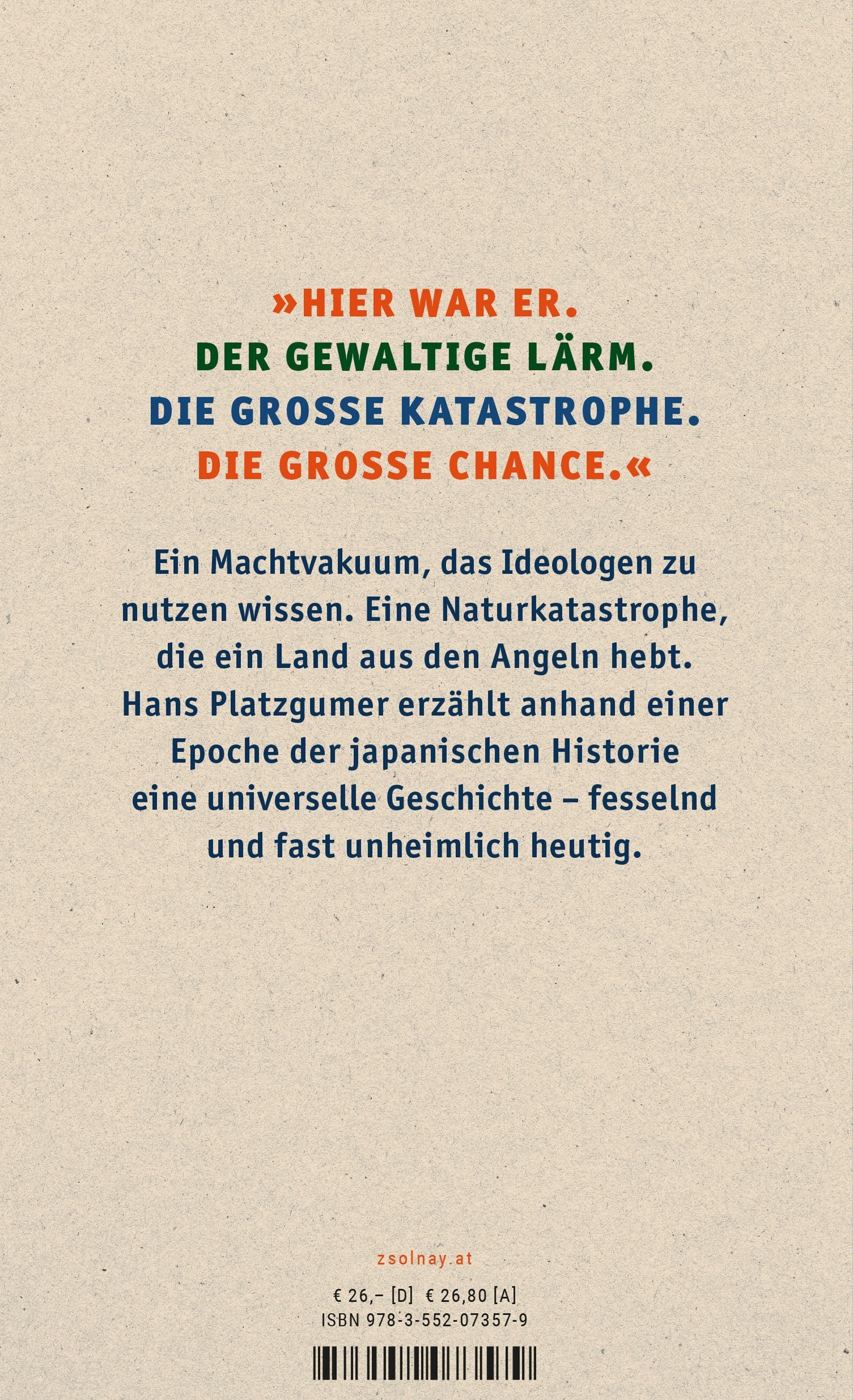 100 Jahre nach dem Kant-Erdbeben in Japan erzählt Hans Platzgumer von einem Machtvakuum, das politische Grabenkämpfe auslöst aktueller denn je. Ein Machtvakuum, das Ideologen zu nutzen wissen. Eine Naturkatastrophe, die ein Land aus den Angeln hebt. Hans Platz...