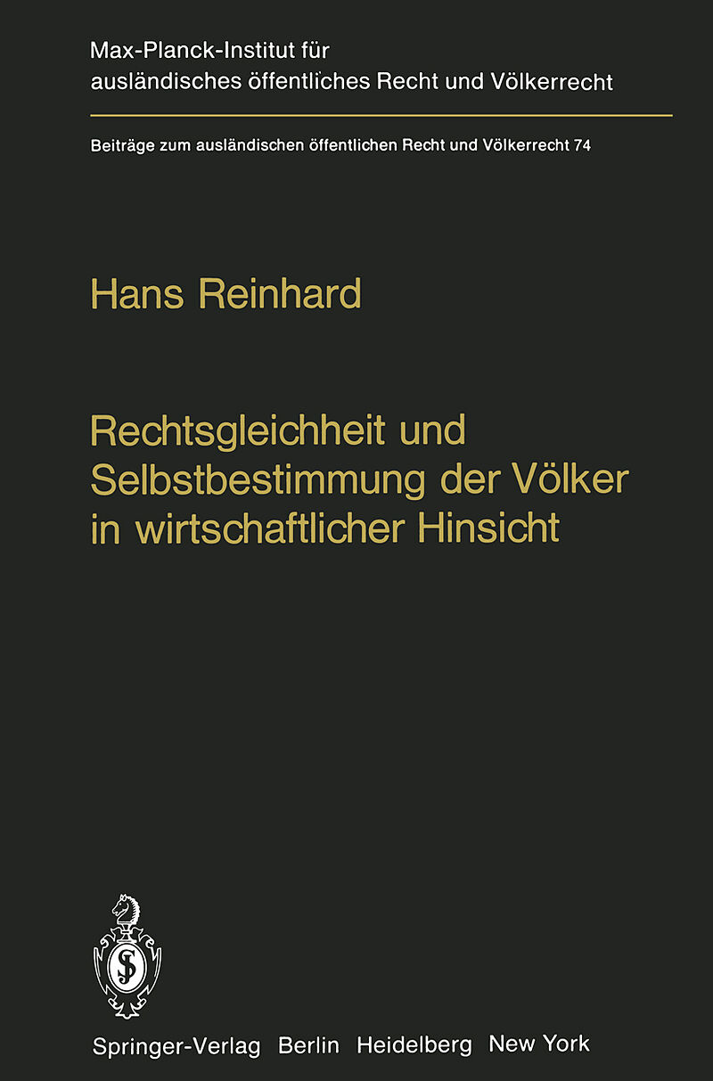 A. Die Menschenrechtskonventionen von 1966.- I. Das wirtschaftliche Selbstbestimmungsrecht im jeweiligen Art. 1.- II. Völkerrechtliche Bedeutung unter Berücksichtigung der Entstehungsgeschichte.- III. Annahme durch den 3. Ausschuß der Generalversammlung.- IV. Art. 25 der Konvention über wirtschaftliche, soziale und kulturelle Rechte sowie Art. 47 der Konvention über bürgerliche und politische Rechte.- V. Annahme der Menschenrechtskonventionen durch die Generalversammlung und ihr Inkrafttreten.- B. Proklamation des Verfügungsrechts über die natürlichen Ressourcen durch die Generalversammlung.- I. Resolutionen 523 (VI) und 626 (VII) von 1952.- II. Gegenständlicher Anwendungsbereich.- C. GV-Res. 1803 (XVII) vom 14. Dezember 1962.- I. Völkerrechtliche Enteignungsgrundsätze.- II. Vorbehalt im Hinblick auf Sukzessorstaaten und -regierungen ehemals kolonial abhängiger Gebiete.- III. Sonstige Aussagen über die Stellung der Staaten gegenüber ausländischen Investitionen.- IV. Abstimmungsverhalten und Vorbehaltserklärungen.- D. GV-Res. 2158 (XXI) vom 25. November 1966.- I. Wesentlicher Inhalt und Stellungnahmen.- II. Tendenzen in der Staatenpraxis.- E. Anschließende Resolutionenpraxis bis zur Charta der wirtschaftlichen Rechte und Pflichten der Staaten vom 12. Dezember 1974.- I. Allgemeine Definition des wirtschaftlichen Selbstbestimmungsrechts.- II. Spezielle Probleme.- F. Doppelte Bedeutung des völkerrechtlichen Gleichheitssatzes als Bestandteil des Prinzips der gleichen Rechte und der Selbstbestimmung der Völker.- I. Materielle Gleichbehandlung der Staaten in den internationalen Handels- und Wirtschaftsbeziehungen.- II. Veränderung der Grundlagen der internationalen Handels- und Wirtschaftsbeziehungen unter Berücksichtigung der tatsächlich ungleichenVerhältnisse.- G. Zusammenfassender Überblick über die Bedeutung der Charta der wirtschaftlichen Rechte und Pflichten der Staaten für das Prinzip der gleichen Rechte und der Selbstbestimmung der Völker.- H. Bedeutung des Prinzips für die Kodifikationsarbeiten der Völkerrechtskommission über den Schutz erworbener Vermögensrechte bei einer Staatensukzession.- I. Problemstellung.- II. Traditionelles Rechtsverständnis und seine sozialen Voraussetzungen.- III. Besonderheiten bei der Statusveränderung eines Gebietes unter fremder Jurisdiktion.- IV. Exkurs: Globalentschädigungsabkommen als Indiz für Veränderungen einschlägiger traditioneller Völkerrechtsnormen.- V. Stellungnahmen zu den Berichten des Sonderberichterstatters.- J. Bedeutung des Prinzips für die Neuordnung des Meeresvölkerrechts..- I. Küstennahe Meereszonen als Gegenstand des Prinzips der ständigen Souveränität über die natürlichen Ressourcen.- II. Problemstellungen bei den Arbeiten des Meeresboden-Ausschusses der Generalversammlung.- III. Regelungsbefugnis der Staaten entgegen den traditionellen Normen des Meeresvölkerrechts.- IV. Bedeutung und Erfolgsaussichten einer vertragsförmigen Kodifikation.- K. Wirtschaftliche Schutzrechte der Völker unter fremder Jurisdiktion.- I. Wirtschaftliche Schutzbestimmungen in Treuhand-Abkommen der Vereinten Nationen.- II. Fortentwicklung dieses Rechtsgedankens durch die Generalversammlung.- III. Einzelfalle.- IV. Allgemeine Bestimmungen über eine Restitutions- oder Ersatzpflicht in der neueren Resolutionenpraxis der Generalversammlung.- L. Die wirtschaftliche Komponente des Prinzips der gleichen Rechte und der Selbstbestimmung der Völker als Bestandteil des ius cogens und des internationalen ordre public.- I. Verständnis des Prinzips alszwingendes Völkerrecht.- II. Speziell: Der zwingende Charakter der wirtschaftlichen Komponente des Prinzips.- III. Meinungsstand unter den Mitgliedstaaten.- M. Verhältnis zum Grundsatz der Nichtintervention.- I. Selbstbestimmungswidriger Zwang gegenüber Staaten im Sinne der Resolutionen von Generalversammlung und UNCTAD.- II. Völker unter fremder Jurisdiktion und das Interventionsverbot.