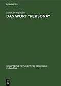 Keine ausführliche Beschreibung für "Das Wort "Persona"" verfügbar. Klappentext Die im Jahre 1905 von Gustav Gröber ins Leben gerufene Reihe der Beihefte zur Zeitschrift für romanische Philologie zählt zu den renommiertesten Fachpublikation...