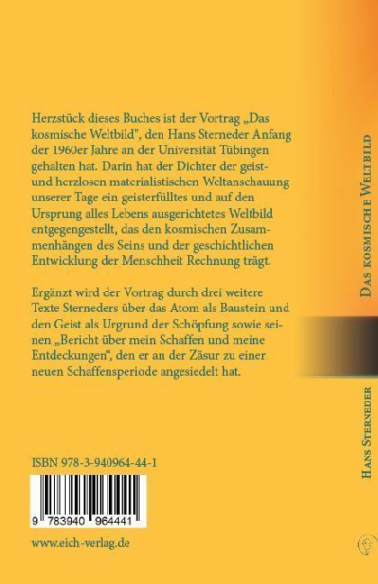 Hans Sterneder zeichnet das Bild einer Denkweise, die unserer heutigen Zeit sehr fremd geworden ist, die aber das Potential hat, aus Not, Elend und Vereinsamung unserer Zeit hinauszuführen. Sein kosmisches Weltbild greift zurück auf ein Urwissen, das allen alt...