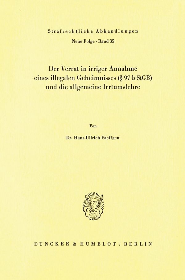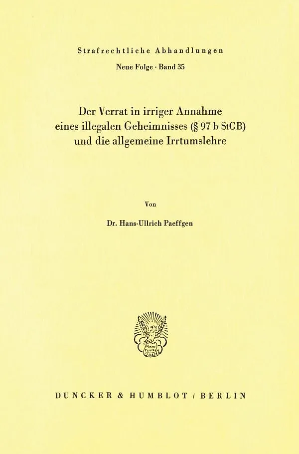 Die »Strafrechtlichen Abhandlungen - Neue Folge« wurden 1957 von Eberhard Schmidhäuser in Zusammenarbeit mit den deutschen Strafrechtslehrern in der Nachfolge der von Hans Bennecke begründeten »Strafrechtlichen Abhandlungen« (1896 bis 1942) eröffnet. Ihr Ziel ...