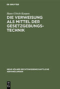 Keine ausführliche Beschreibung für "Die Verweisung als Mittel der Gesetzgebungstechnik" verfügbar. Frontmatter -- Inhalt -- Literatur -- Abkürzungen -- Einleitung -- Abschnitt I: Einführung -- Abschnitt II: Die Gesetzgebungstechnik -- A. Erster Teil...